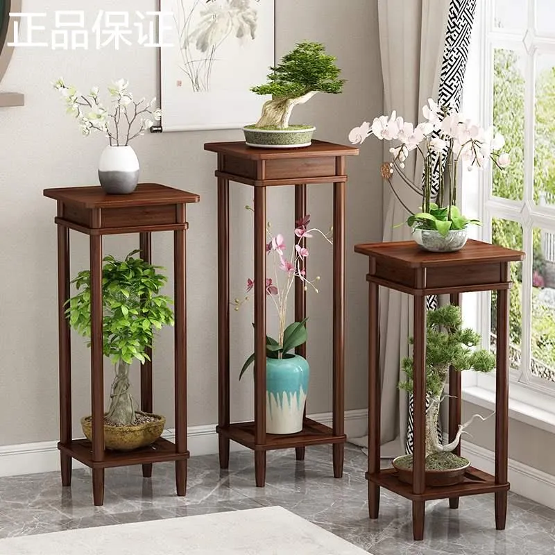 新品花架落地式室内置物架客厅装饰品摆件花盆架子实木新中式绿萝