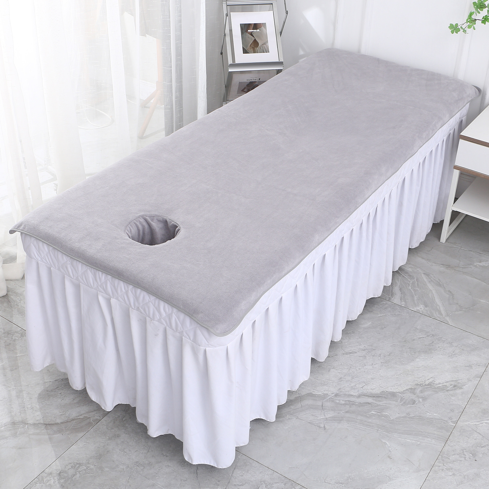 美容院床单铺床洞巾按摩床巾推拿灰色定制logo包边床单带洞大毛巾