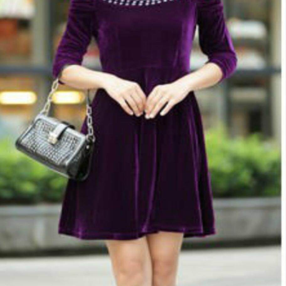 春秋冬女装新款中年妈妈装大码修身韩版进口金丝绒长袖连衣裙