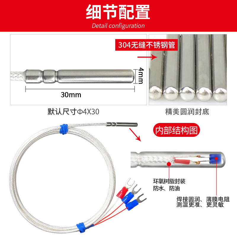 Pt100温度传感器滚口封装防水油测温探头贴片探针铂热电阻K热电偶