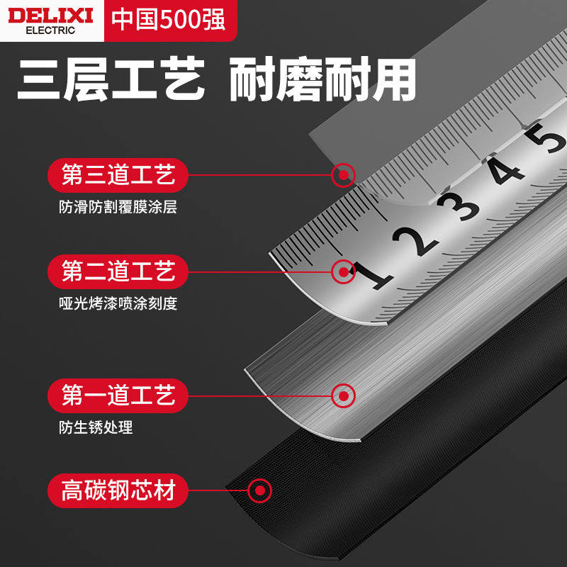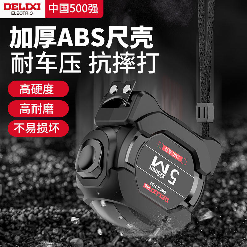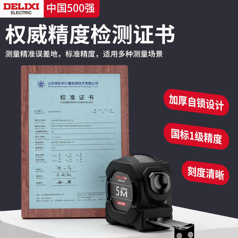 德力西钢卷尺家用不锈钢5米加硬米尺耐磨防摔鲁班尺盒尺自锁尺子