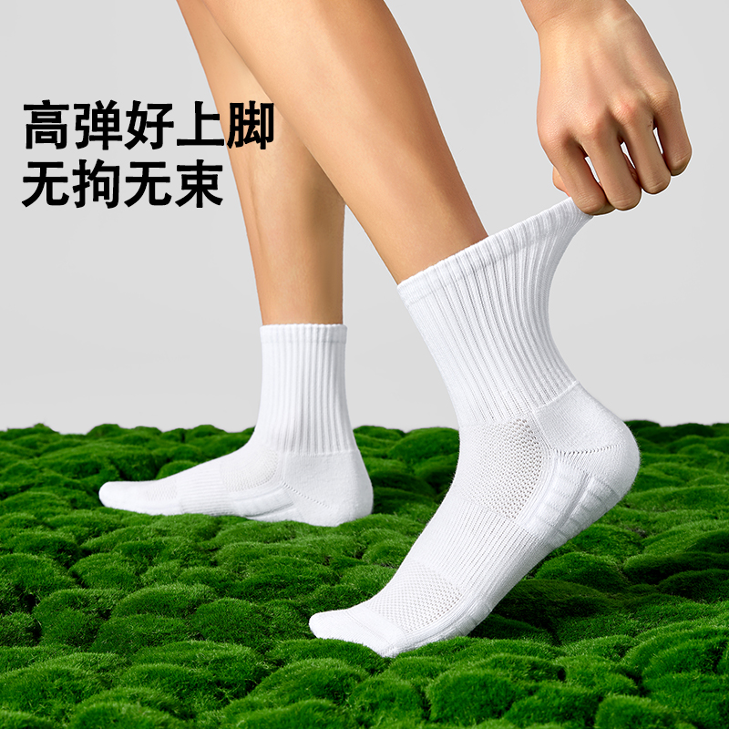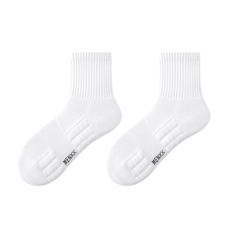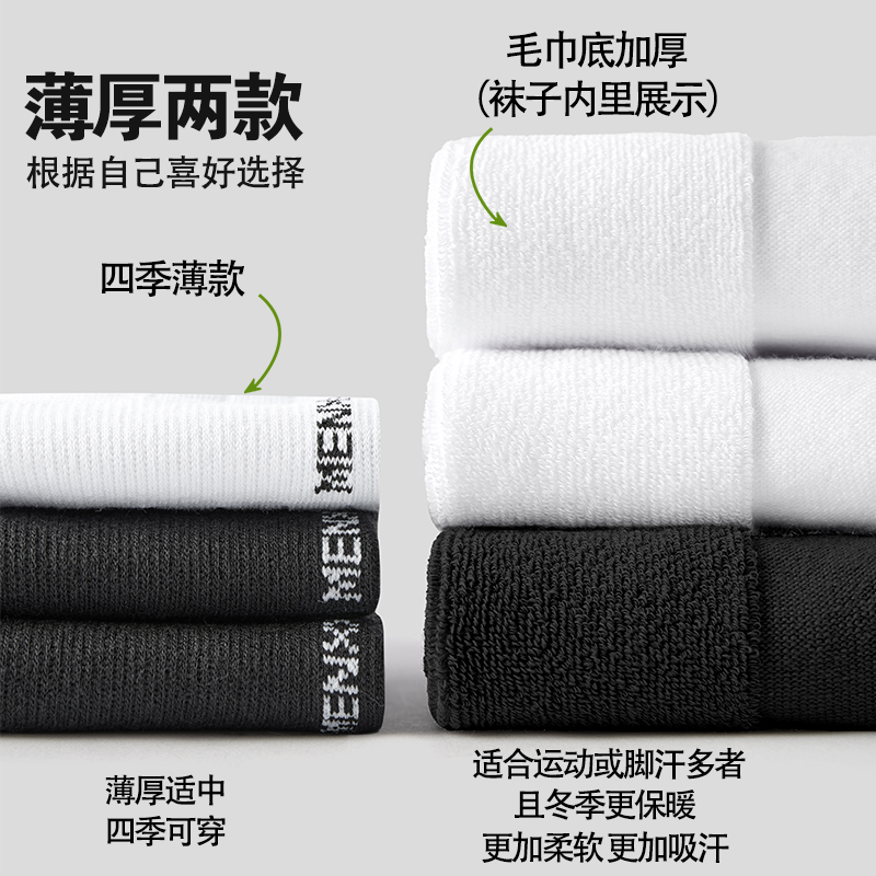MENXX袜子男白色中筒袜纯新疆棉毛巾底运动袜10A抗菌防臭黑色长袜