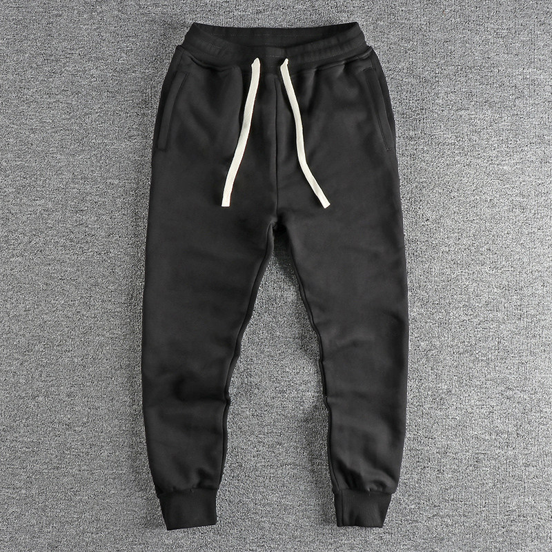 代购秋季重磅纯棉毛圈休闲卫裤男修身纯色抽绳运动束脚裤青年长裤