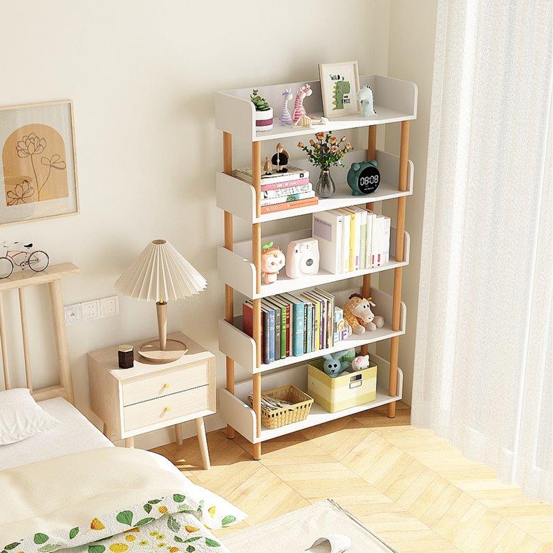 简易书架落地置物架多层儿童小书柜子实木一体靠墙收纳架客厅