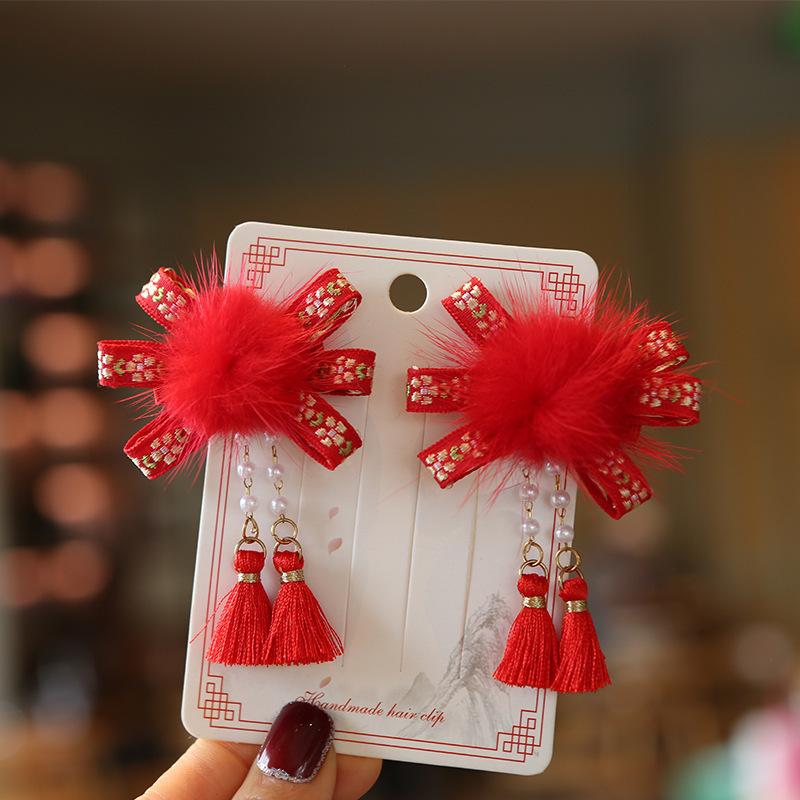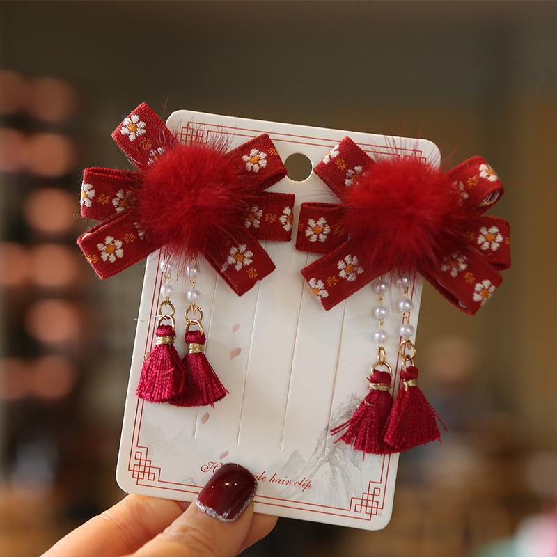 秋冬新款儿童发夹2025新年头花宝宝红色蝴蝶结小女孩发卡女童头饰