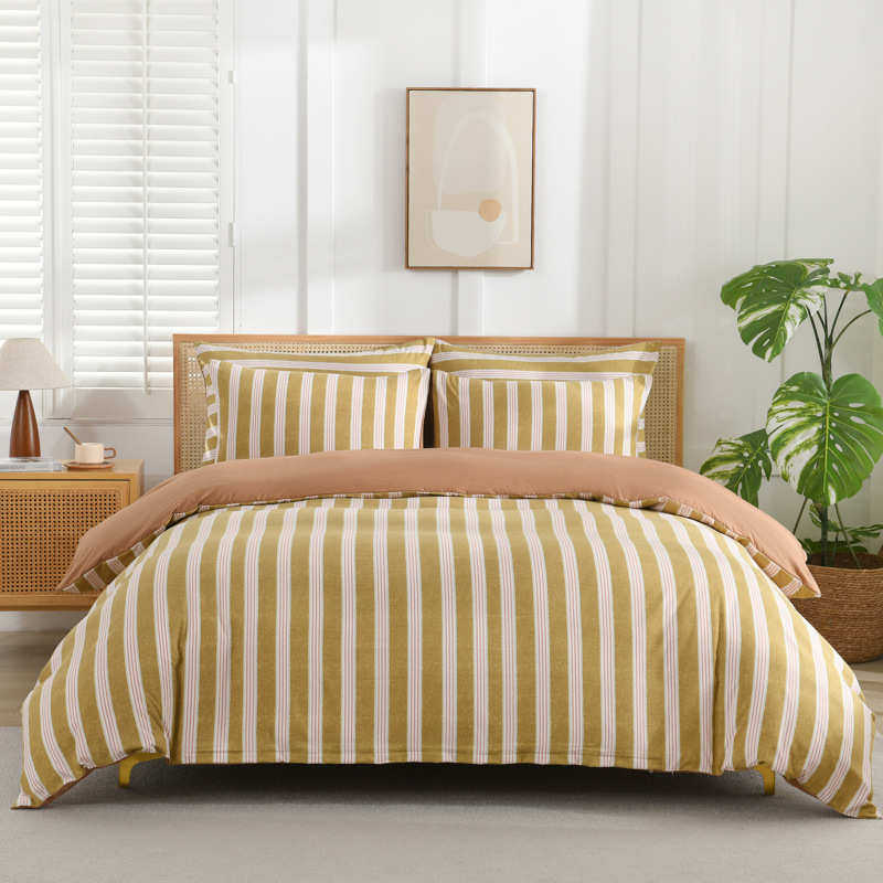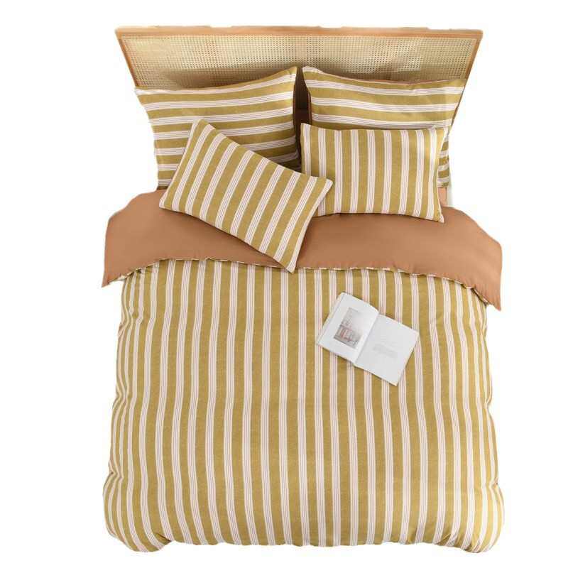 厂家简约条纹柔软水洗棉床上三件套外贸单人床单被套床品四件套