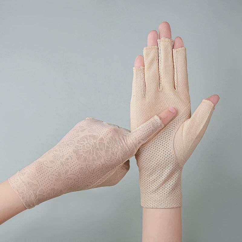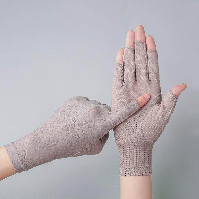 春夏7038半指女士冰丝露指美甲采茶骑行开车户外冰爽防滑防晒手套