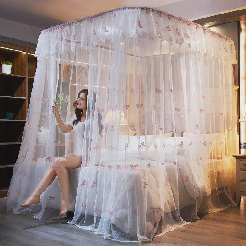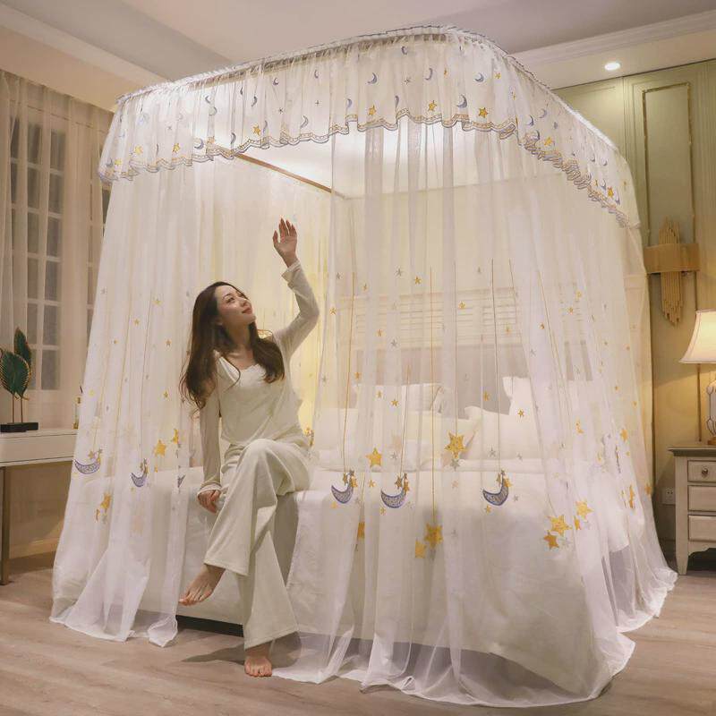 新款加密防尘窗帘布绣花轨道导轨u型可升降床幔家用落地式蚊帐