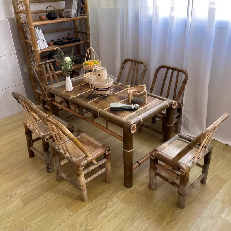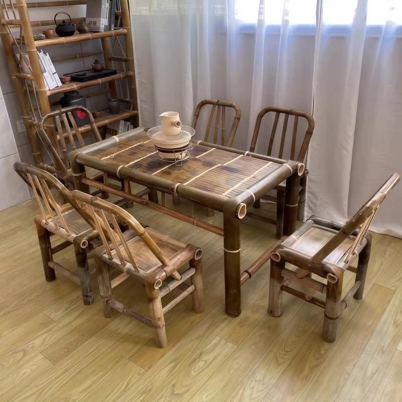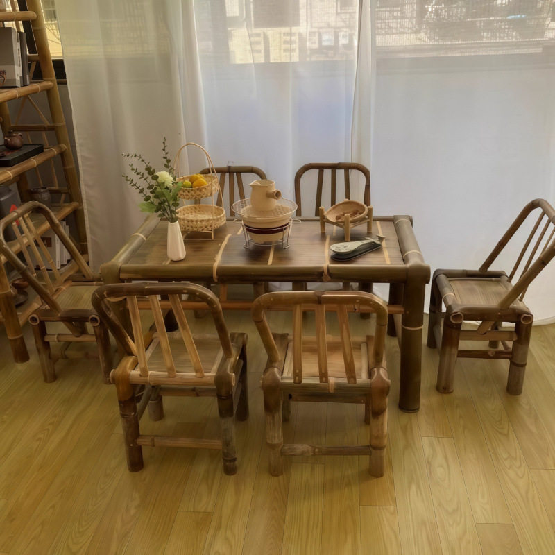 中国风老式桌子竹子桌椅全套户外围炉煮茶桌餐桌