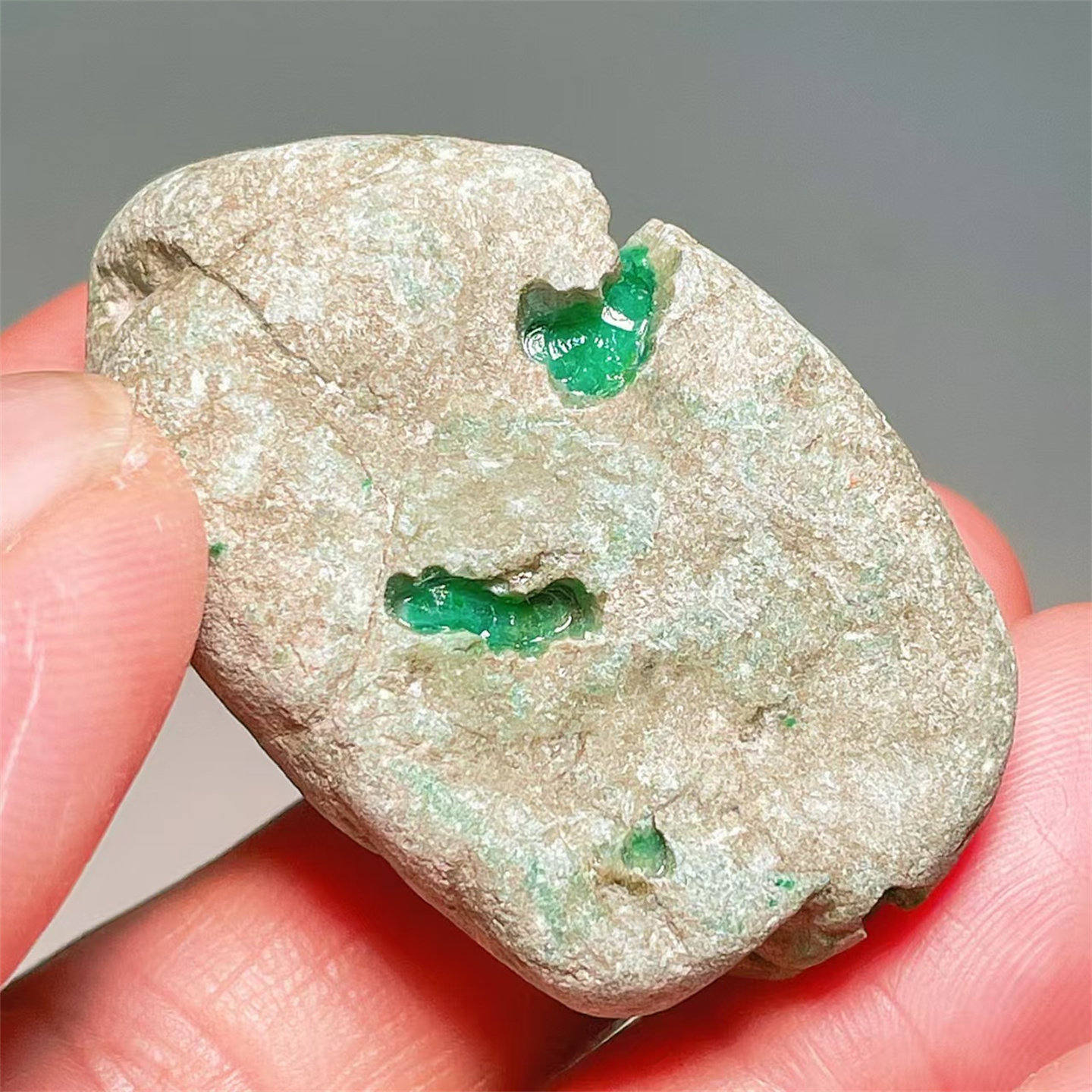 A34 精品缅甸天然翡翠原石老坑后江场口色料牌子戒面料 重50克