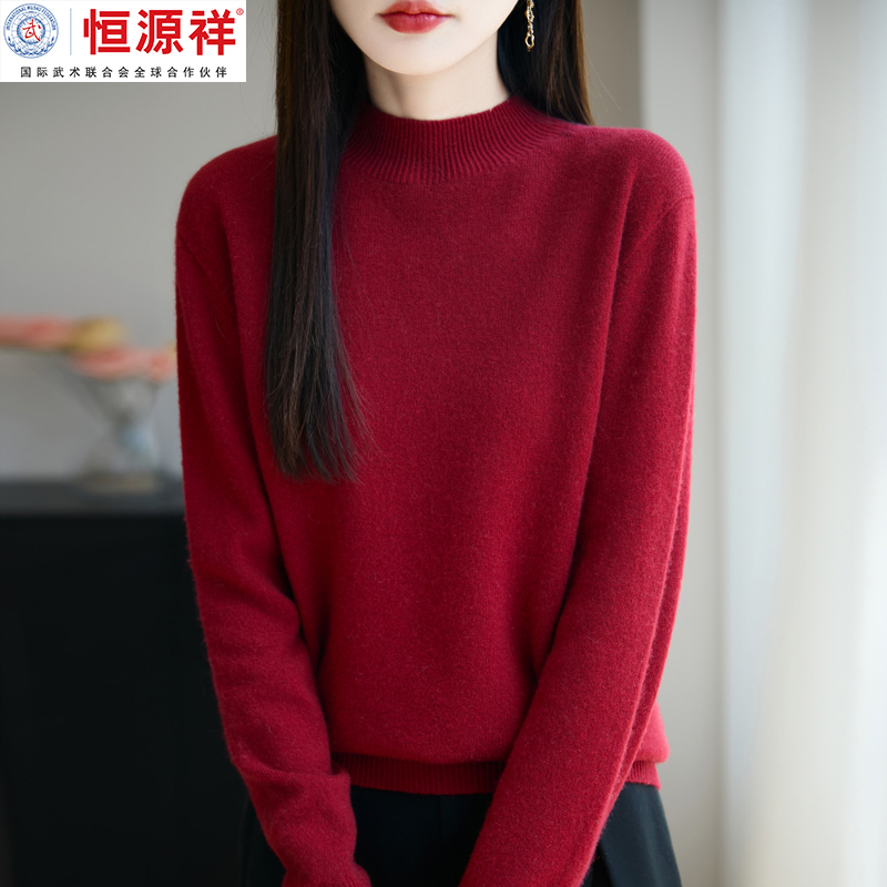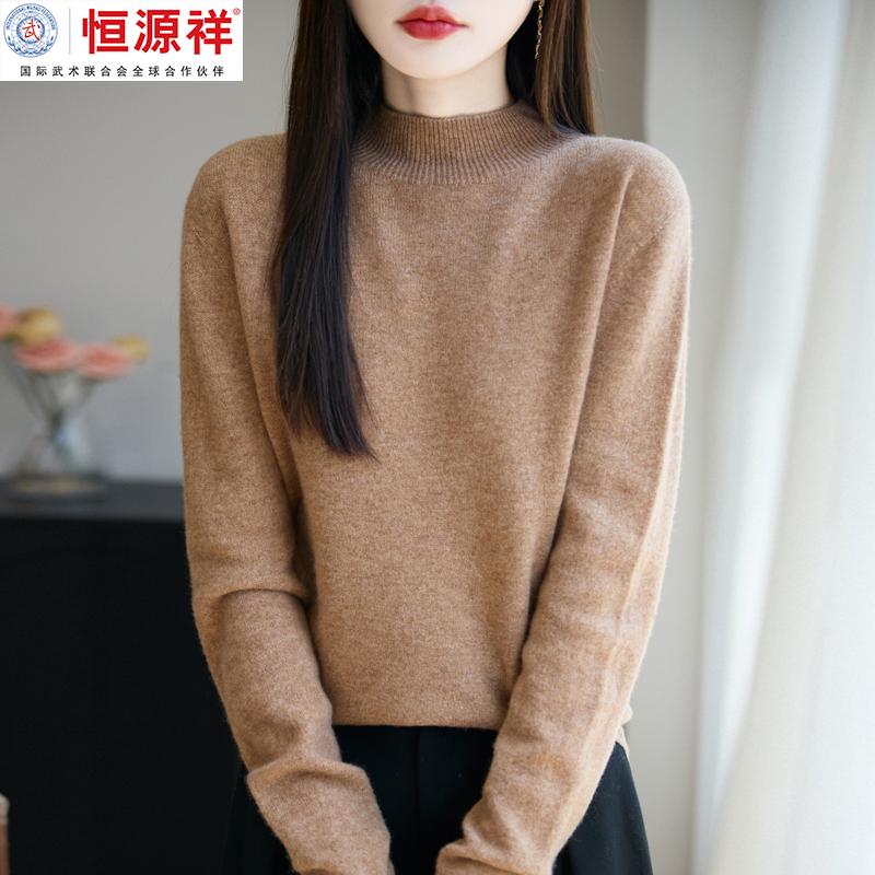 恒源祥彩羊2025新款半高领羊毛衫女宽松套头可机洗内搭毛衣打底衫