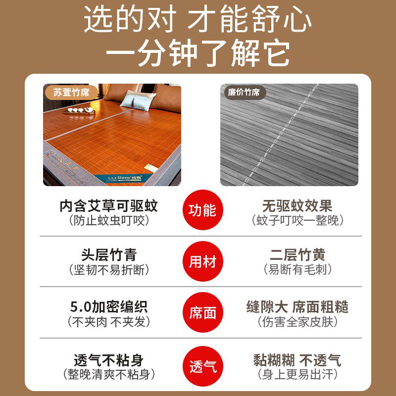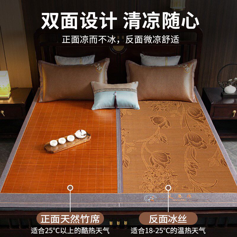 夏季竹席凉席2024新款夏天双面冰丝席学生宿舍单人可折叠空调席子