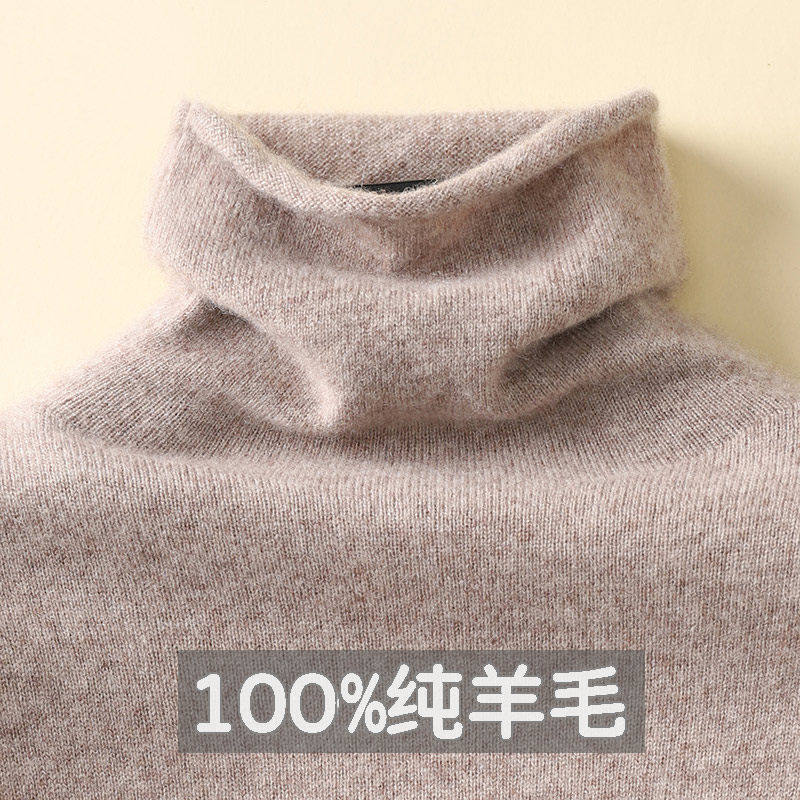 堆堆领羊毛衫女100纯羊毛高领套头秋冬卷边毛衣打底衫针织衫上衣