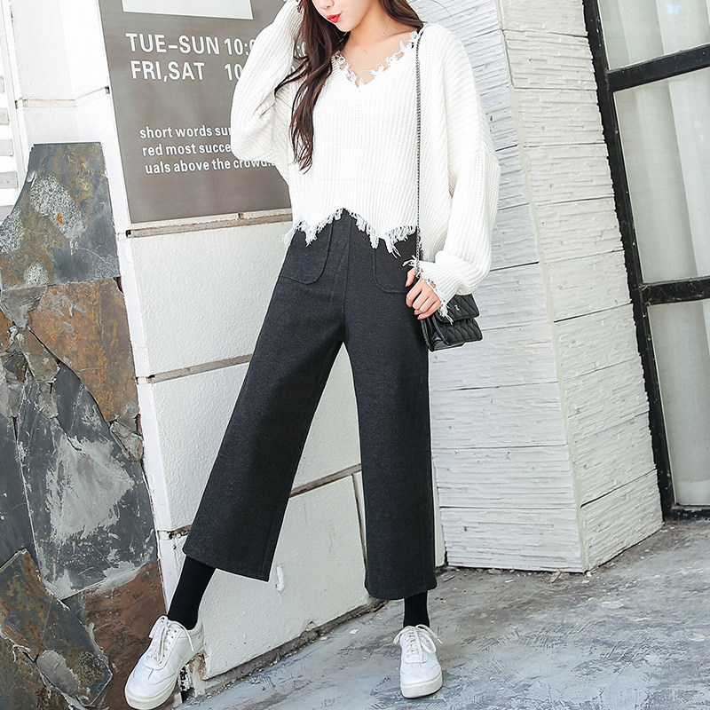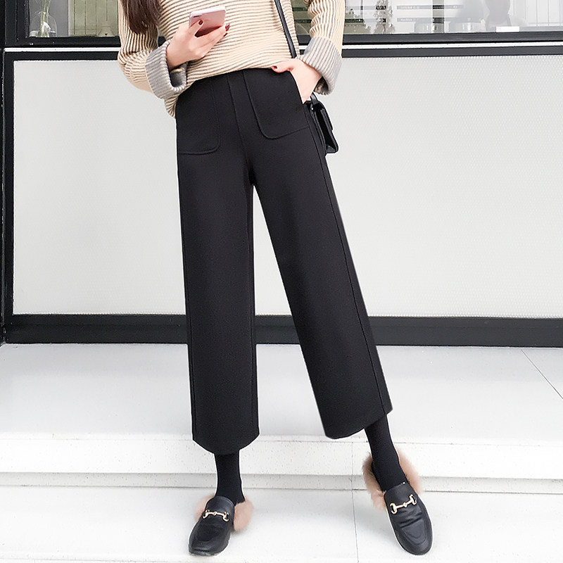 150cm小个子女装显高毛呢阔腿裤秋冬八分155矮个子高腰九分裤直筒