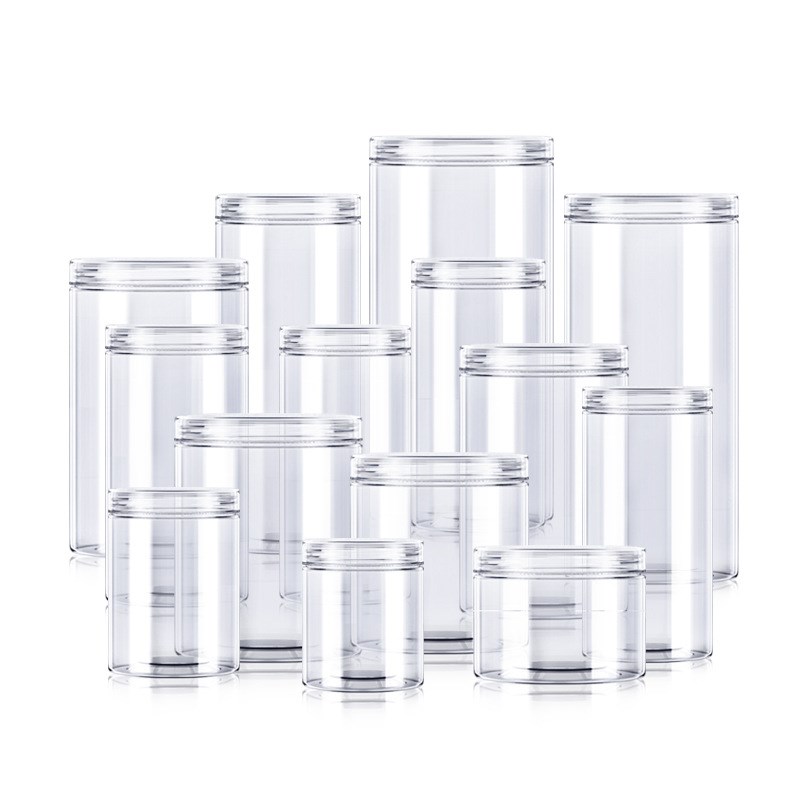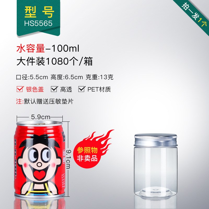 新款铝盖透明塑料密封罐圆形食品包装塑料罐 pet广口塑料瓶子现货