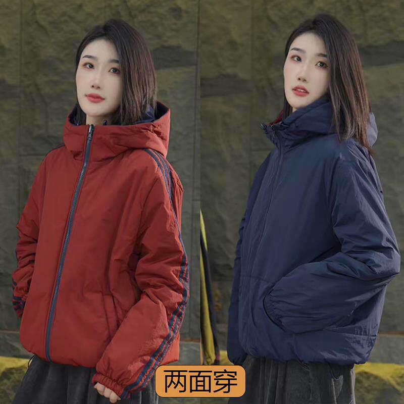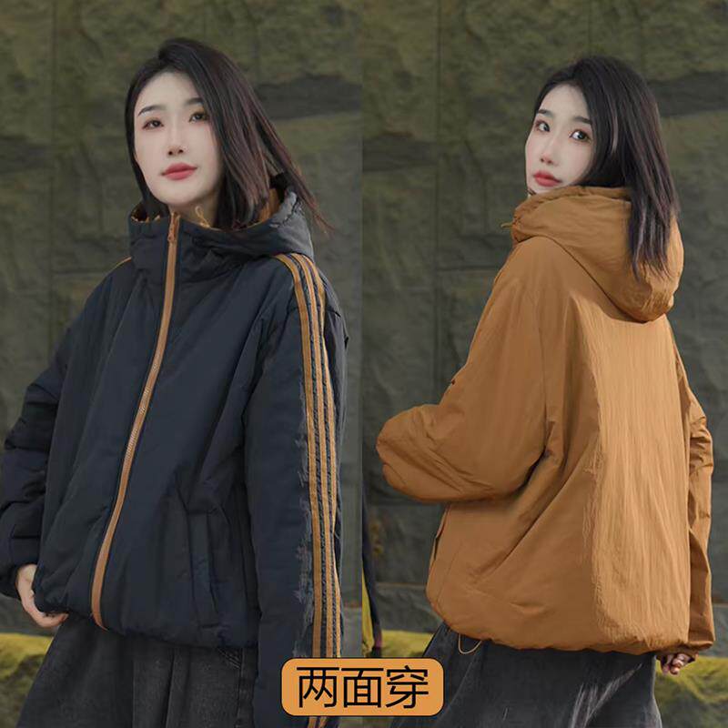 2025秋冬新款休闲简约双面穿棉服女宽松显瘦百搭连帽保暖棉衣外套