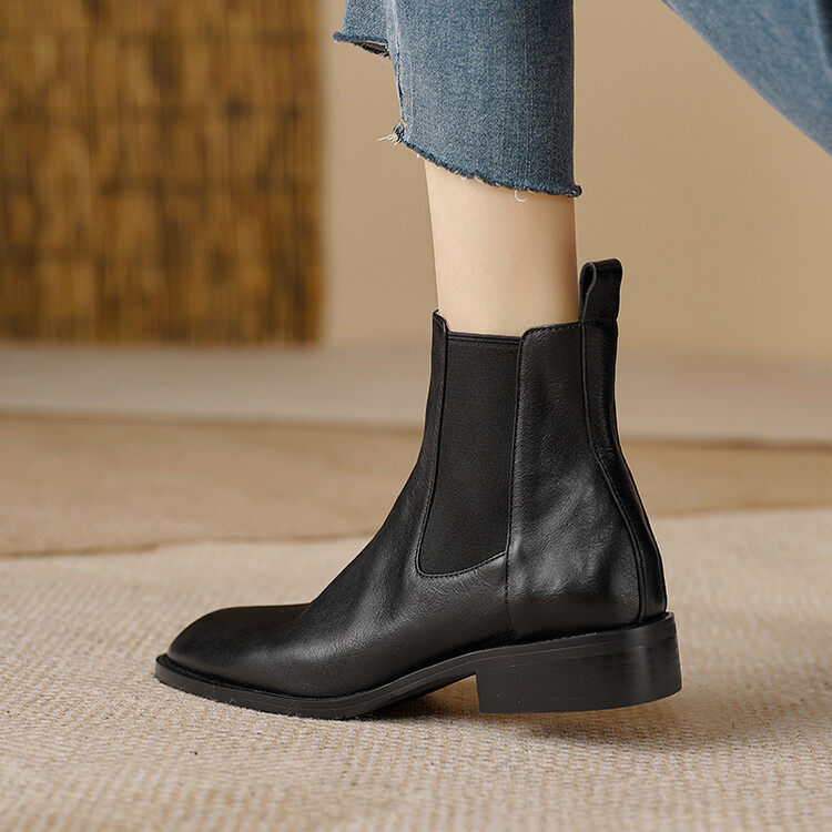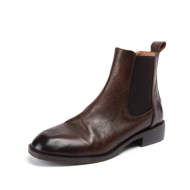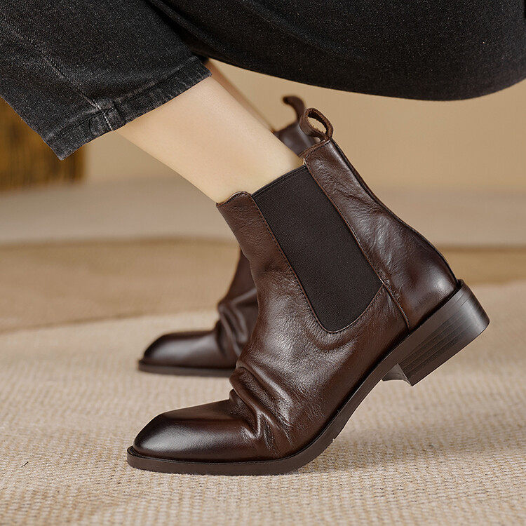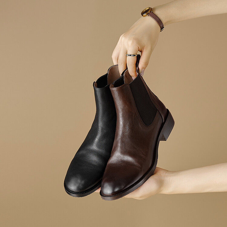 新款切尔西靴圆头高帮休闲英伦复古女靴牛皮bai搭短靴一脚蹬马丁