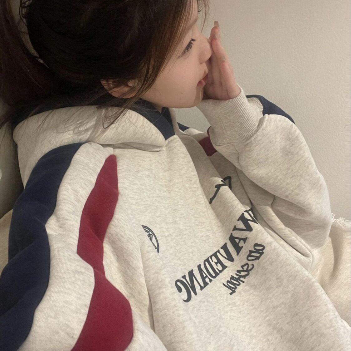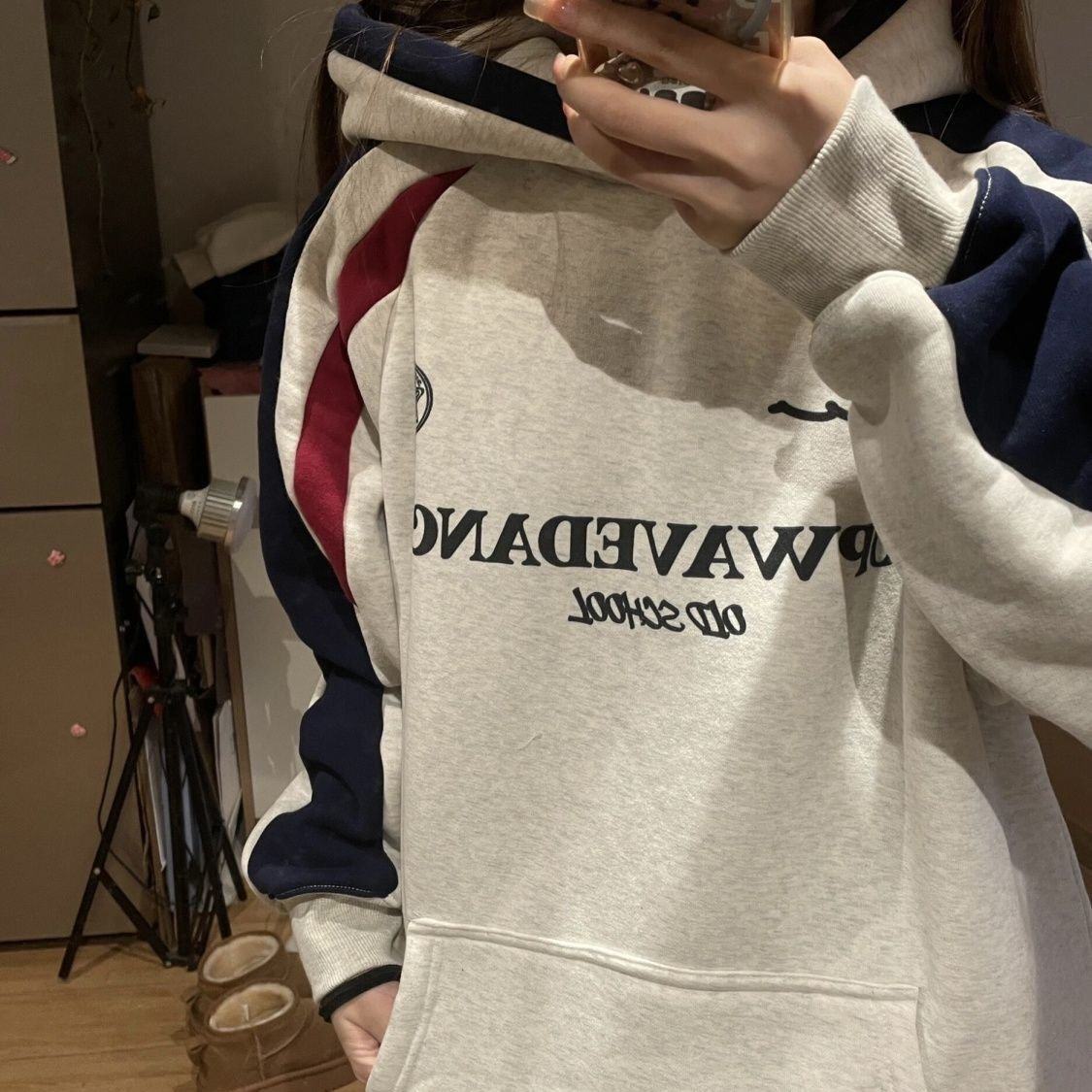 420克华棉复合银狐绒 连帽无绳插肩撞色袖卫衣