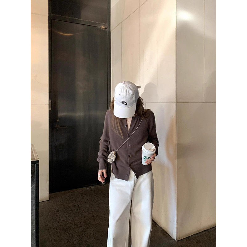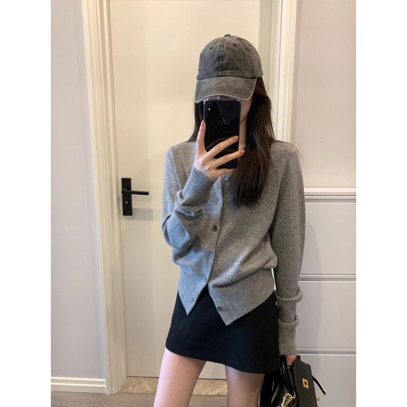安可拉红长袖针织开 衫女早春季设计感韩系小众宽松毛衣内搭打底