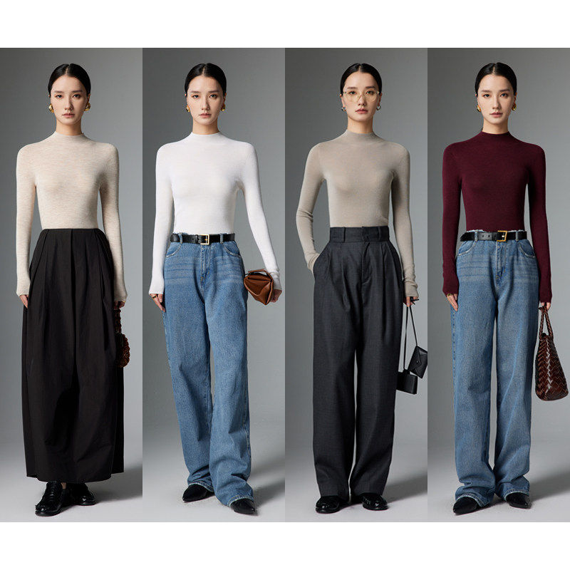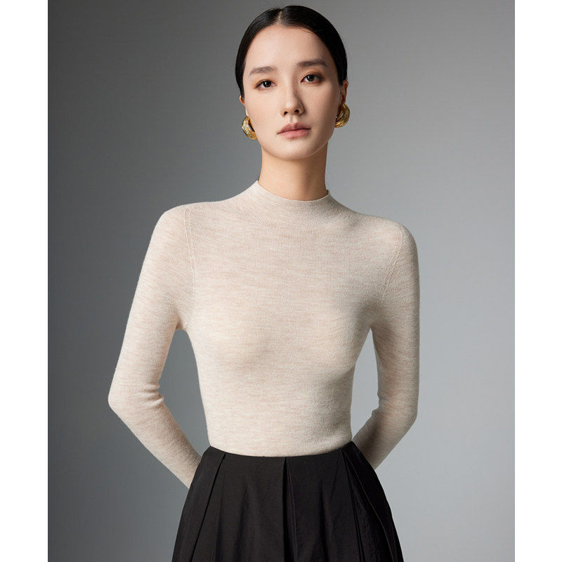 120s扬子纱精纺半高领羊毛衫女秋冬毛衣可机洗上衣内搭针织打底衫