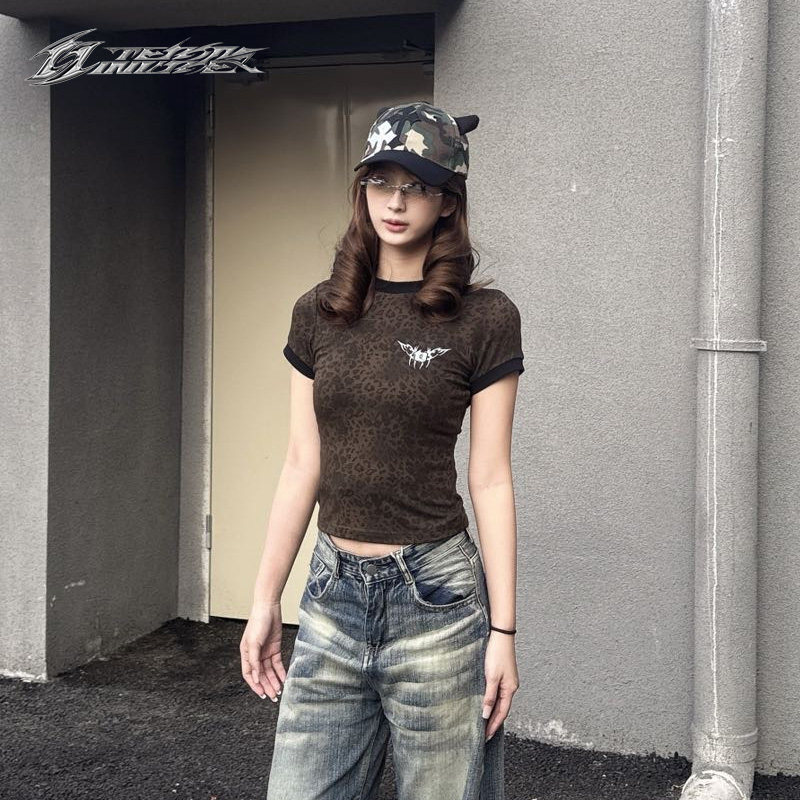 【Ti舞团】豹纹美式复古个性街舞潮牌爵士显瘦辣妹印花短袖T恤