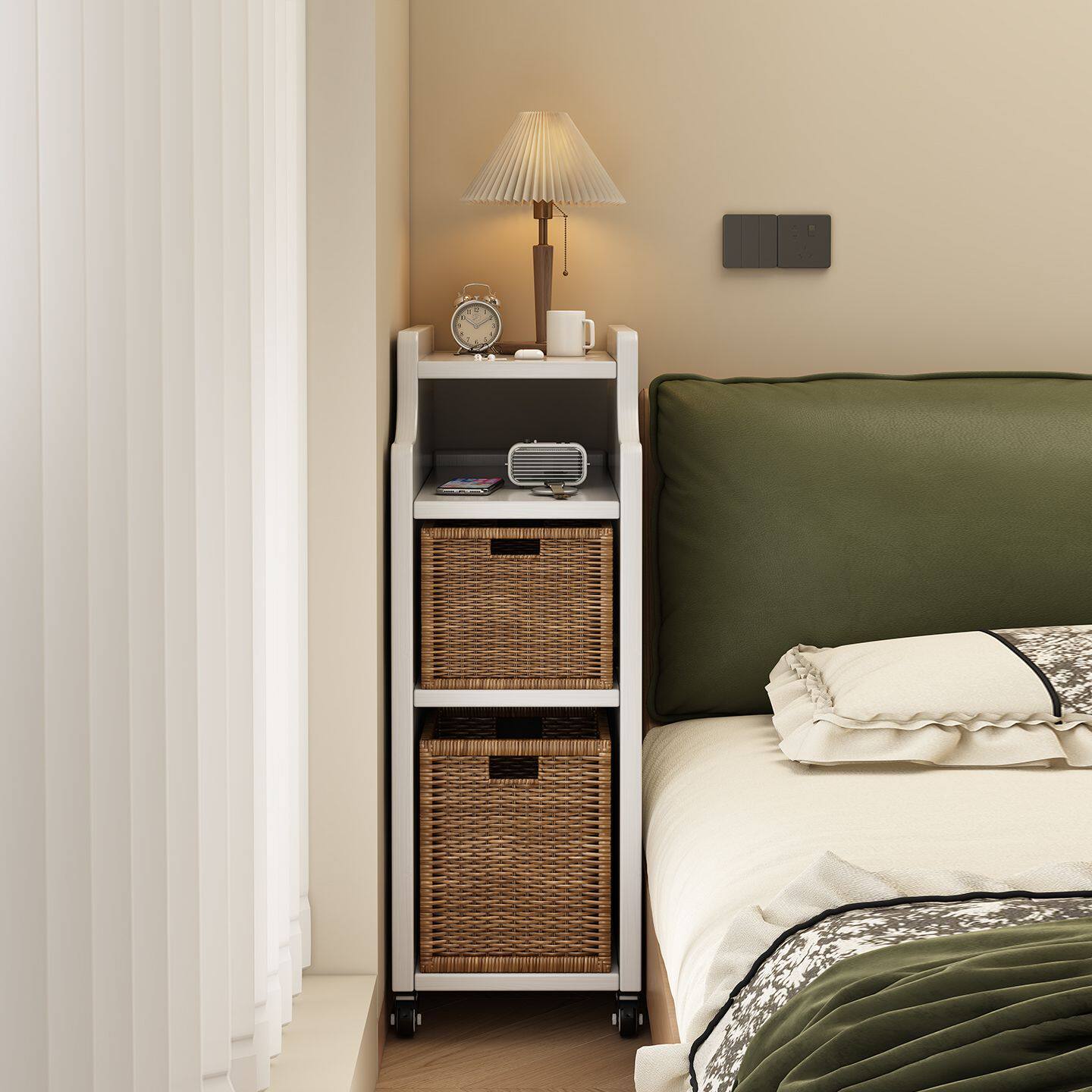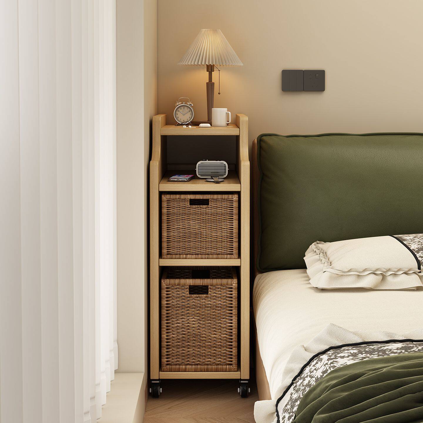 新款家用20cm超薄极窄边版藤编替代神器小型简易移动床头柜置物架