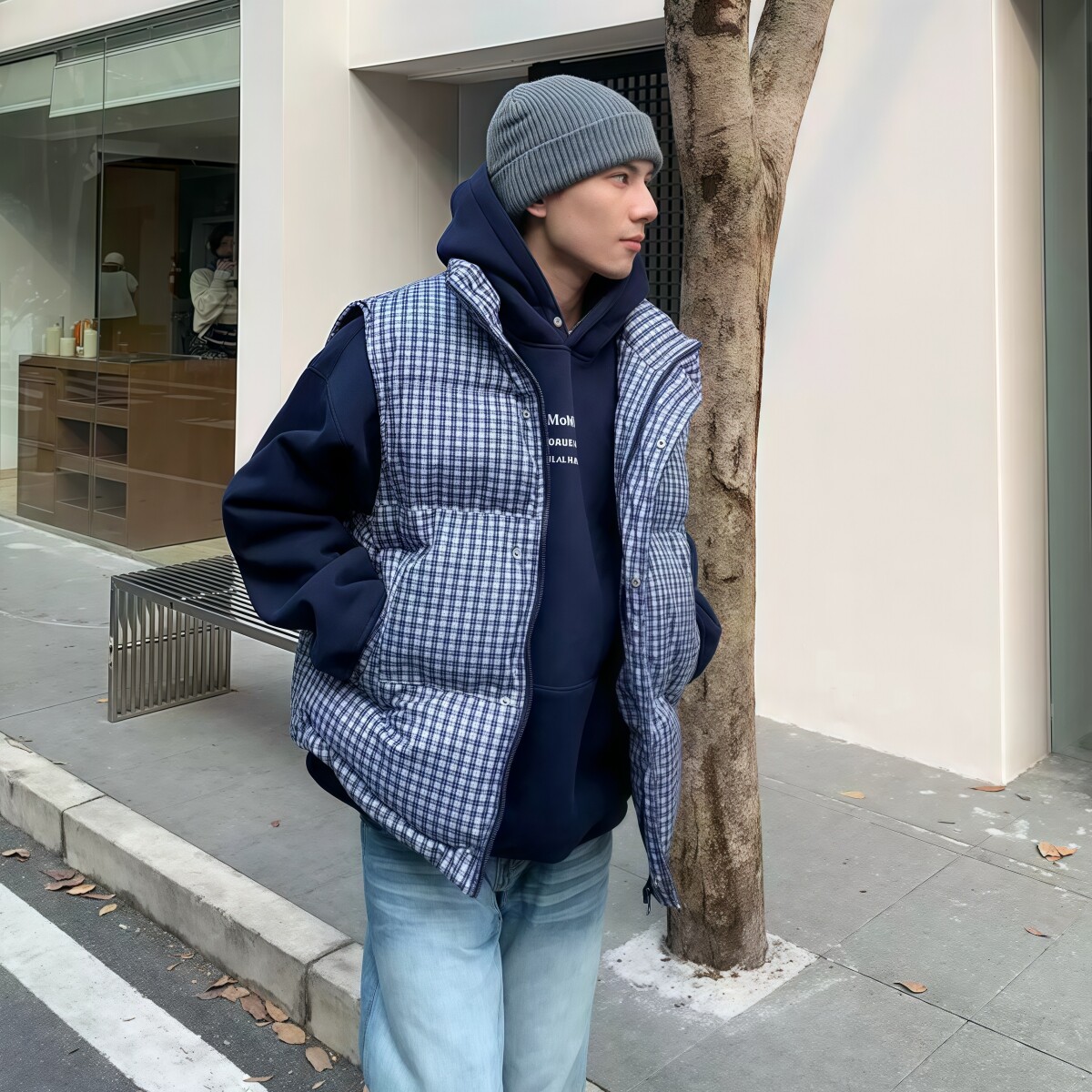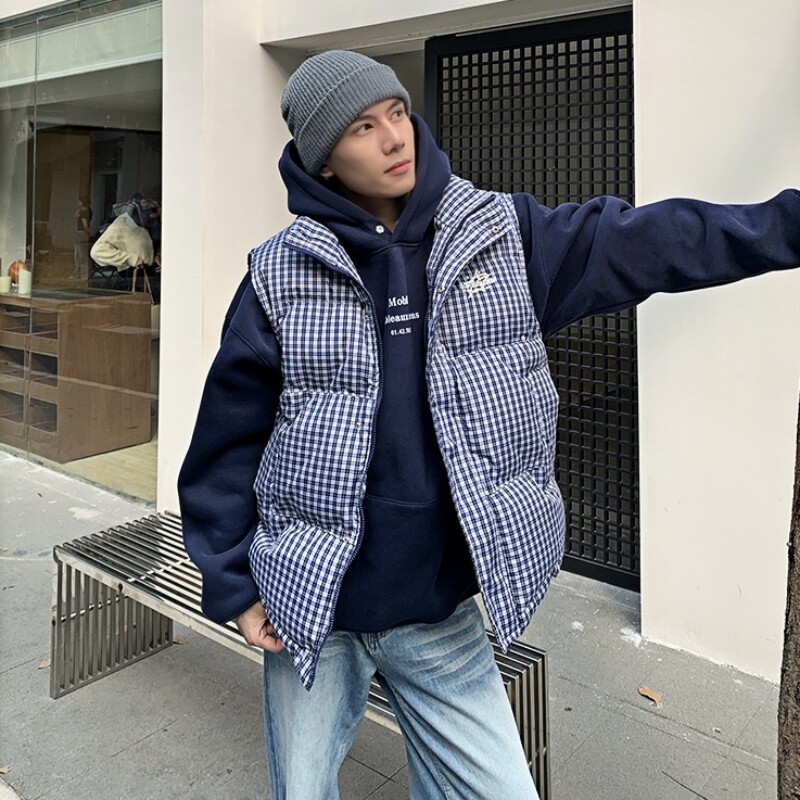【情侣款】大码宽松格子棉服马甲秋冬叠穿无袖背心男女外套602