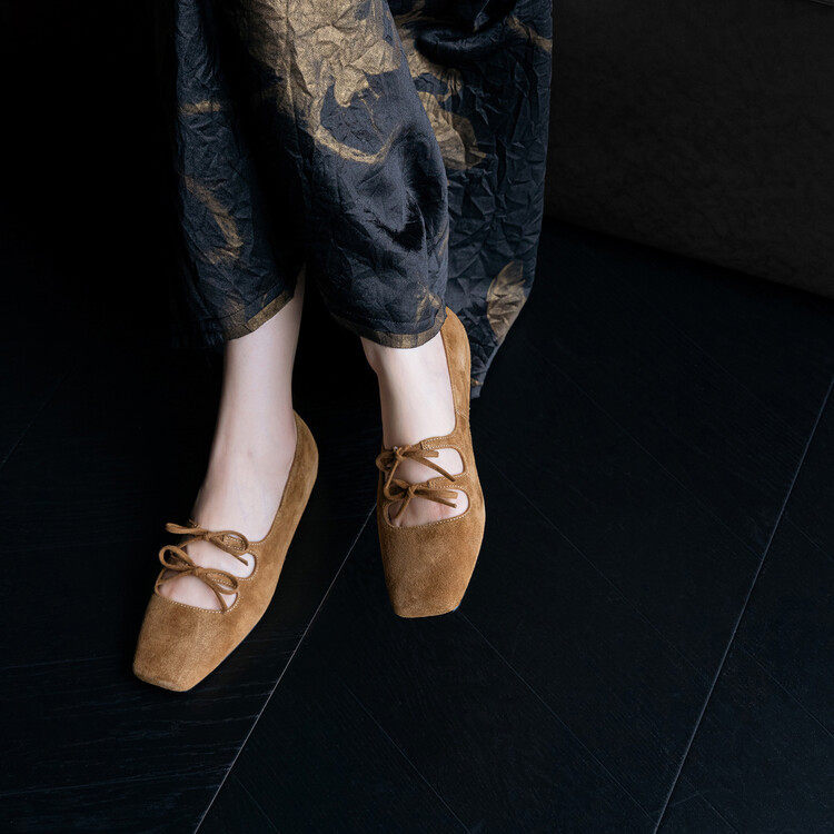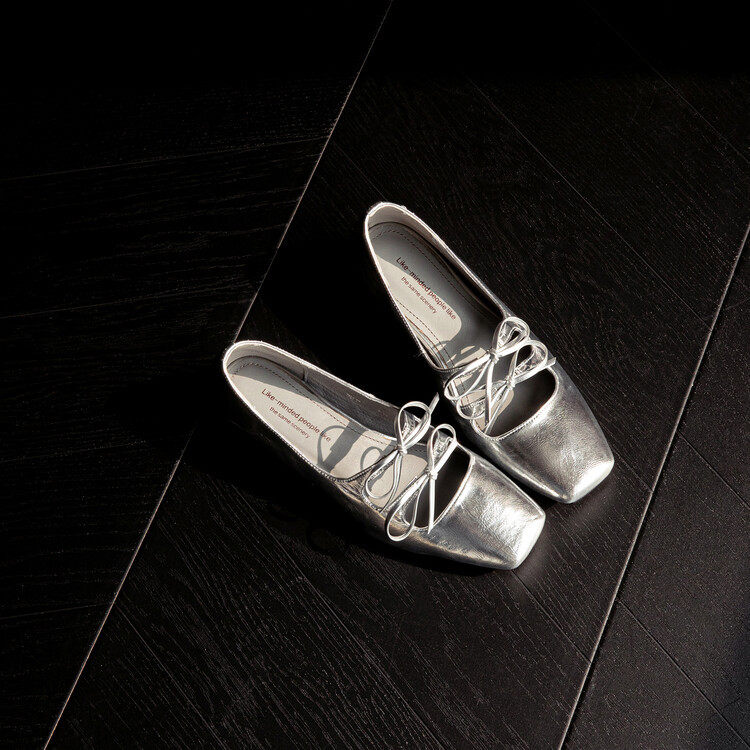 内增高时尚蝴蝶结单鞋女2024秋季新款韩版方头浅口百搭舒适平底鞋