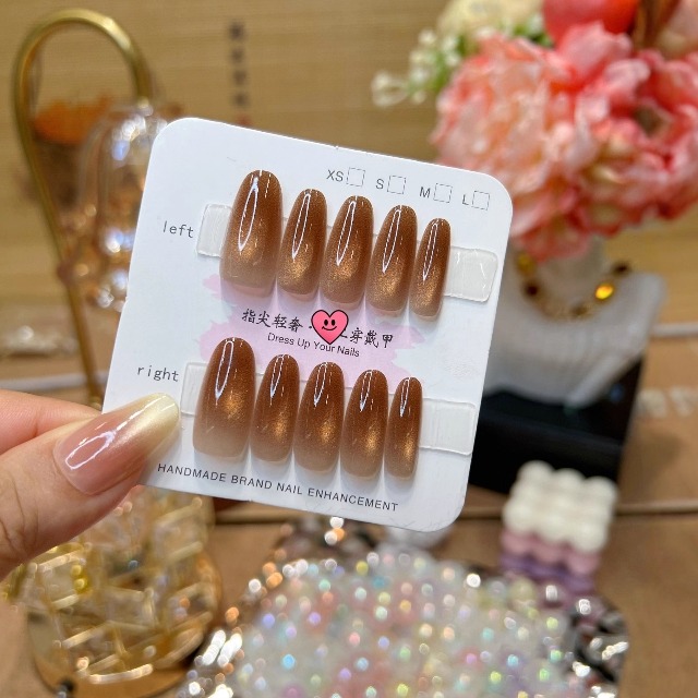 梵甲优品C423椭圆金秋玻璃珠猫眼可拆卸预制甲 10片装
