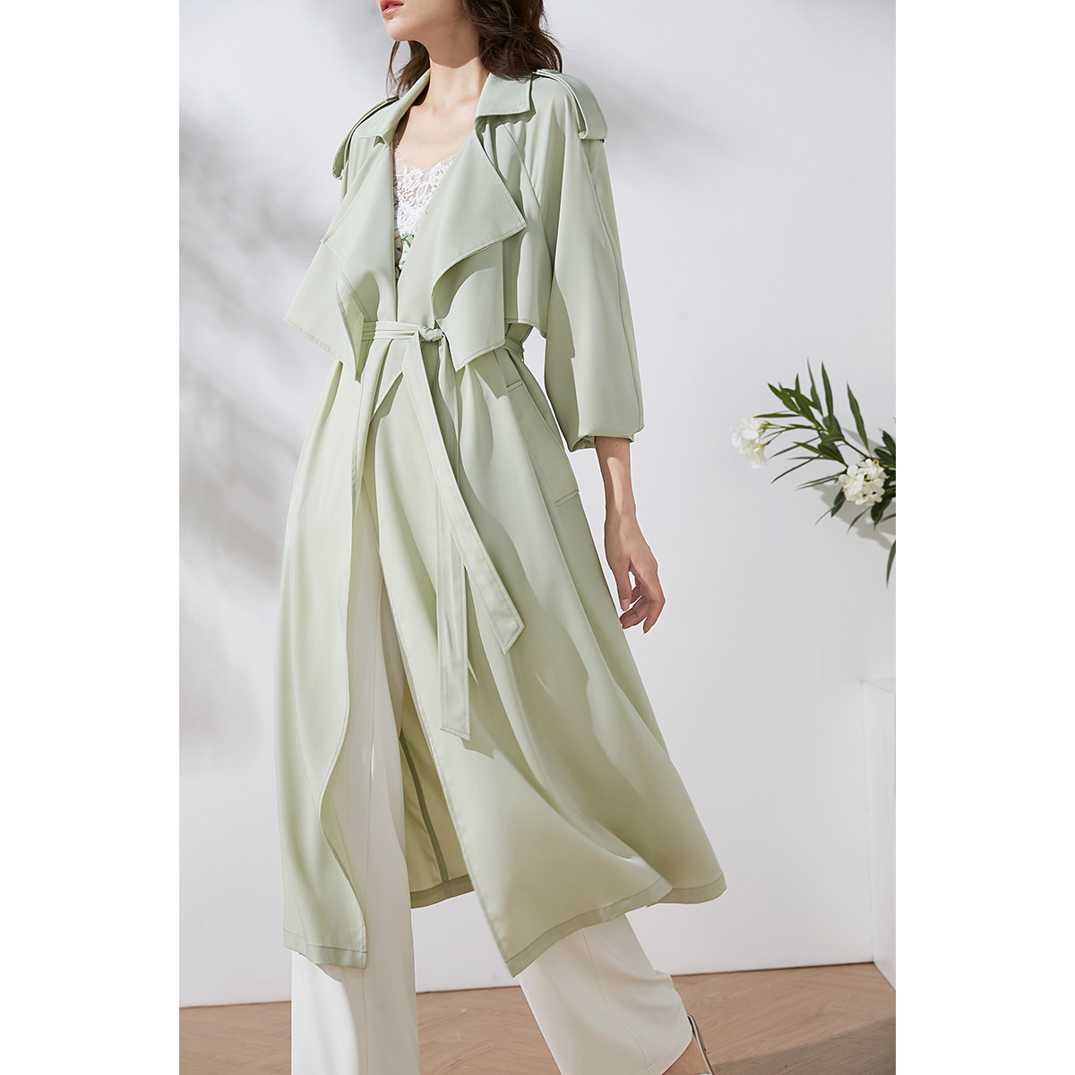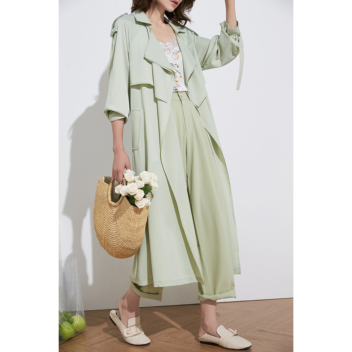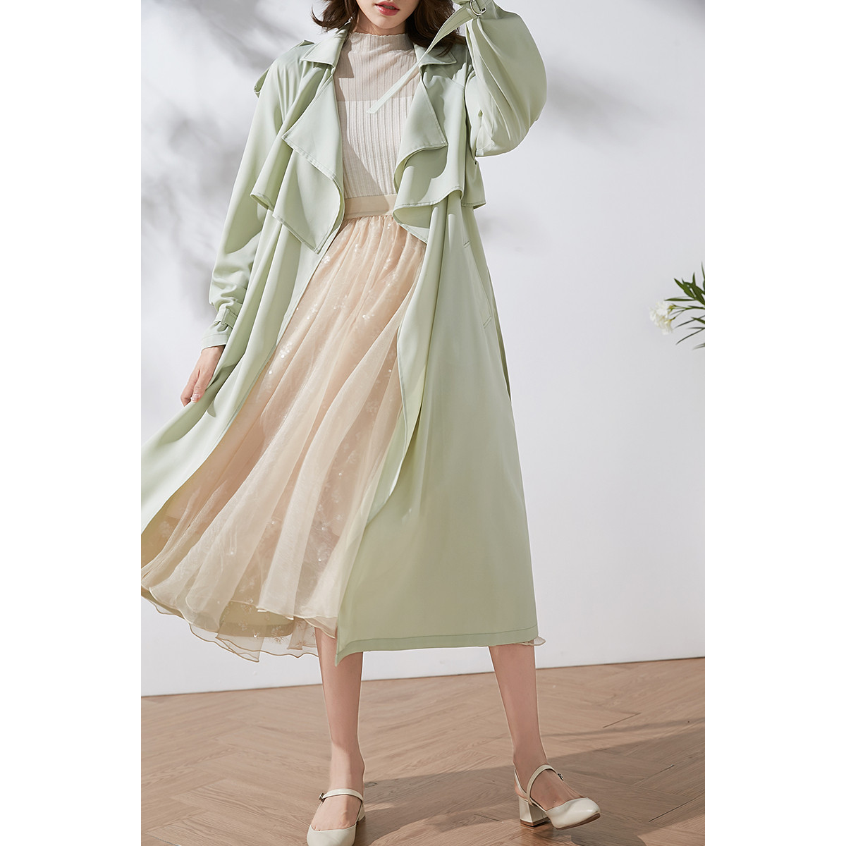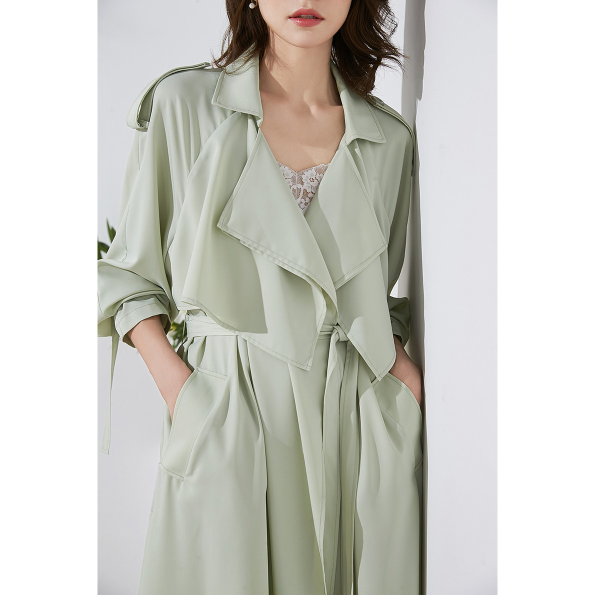 薄荷绿薄款25春秋高级感超好看中长款薄款垂坠感风衣外套女款新款