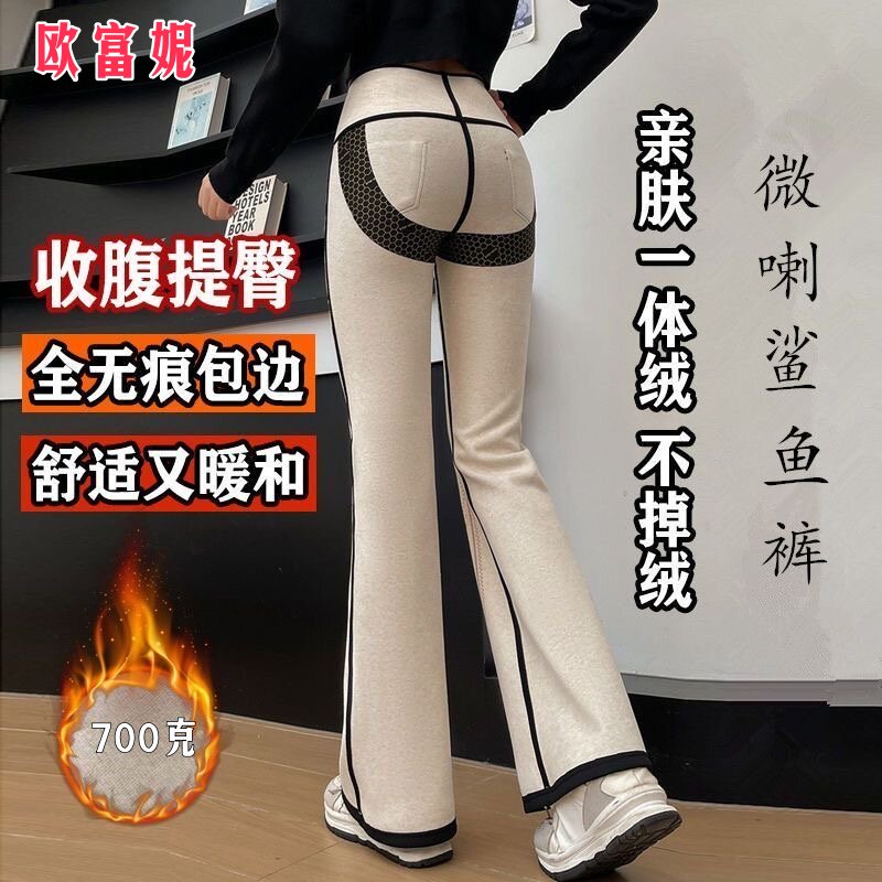 700g羊绒蚕丝款高腰收腹提臀显瘦加绒加厚护膝护腰微喇叭鲨鱼裤