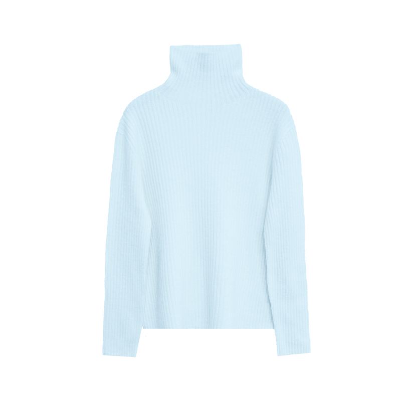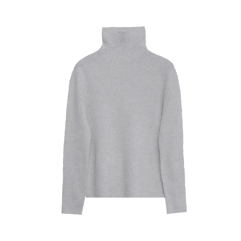 【橙庐】529708坑条纹堆堆领无缝一体绵羊毛打底衫 秋冬女士时尚