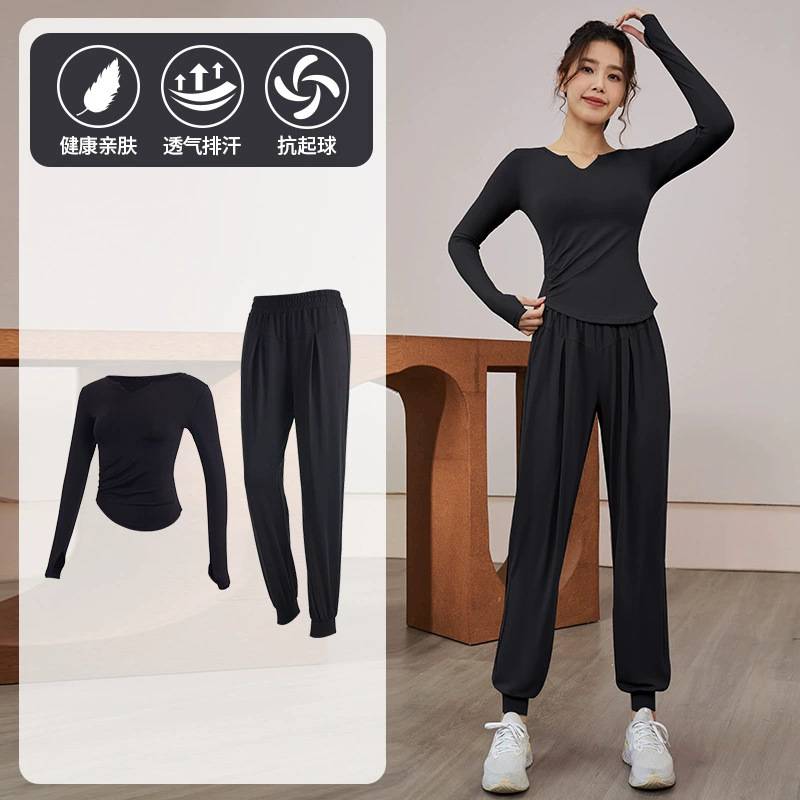 健身服套装女春夏修身速干户外晨跑步运动长袖高级感普拉提瑜伽服