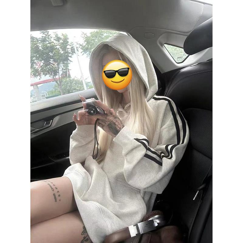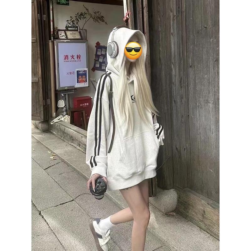 美式三条杠连帽卫衣女春秋季宽松潮牌ins高街条纹长袖上衣带帽子