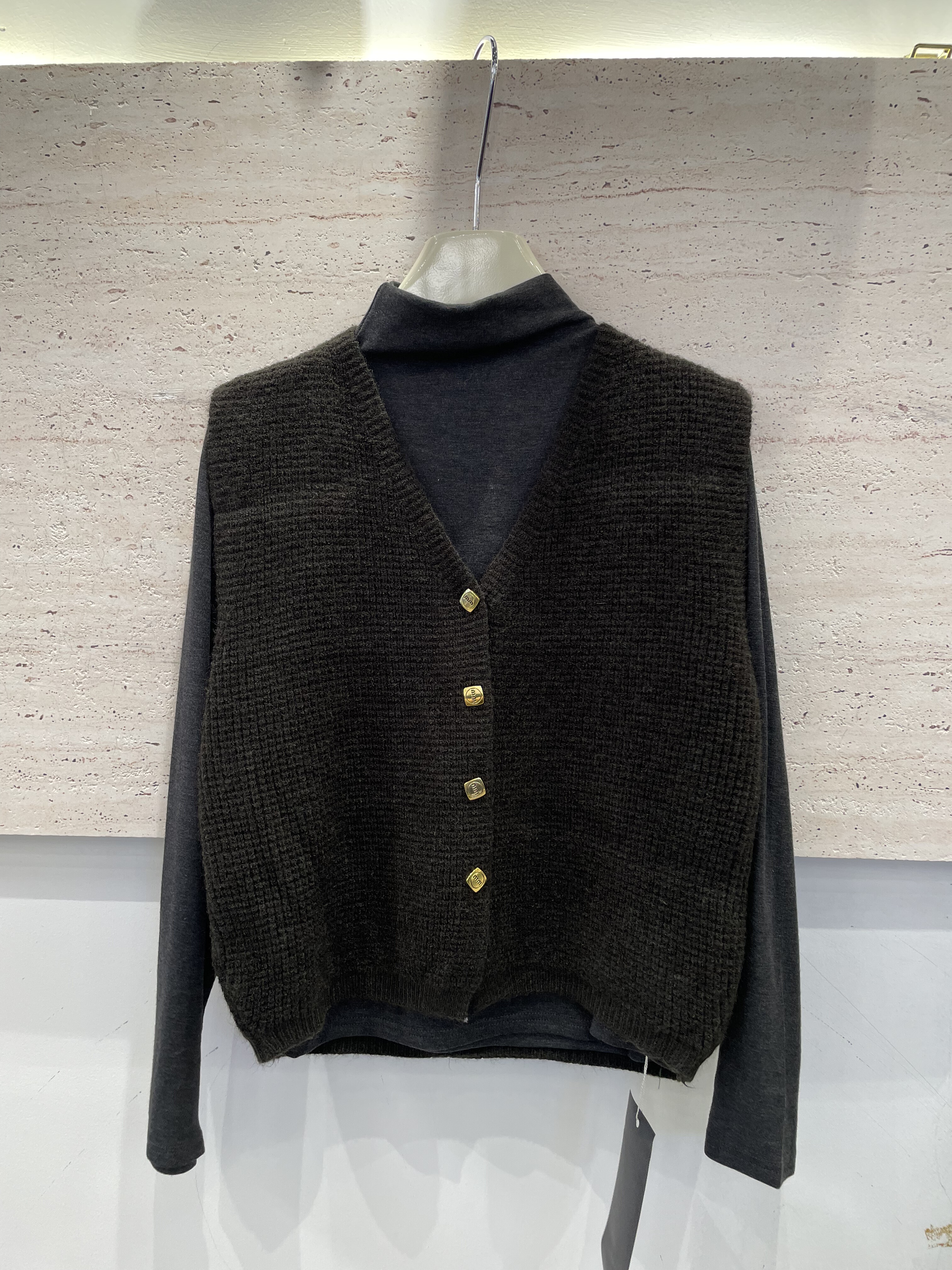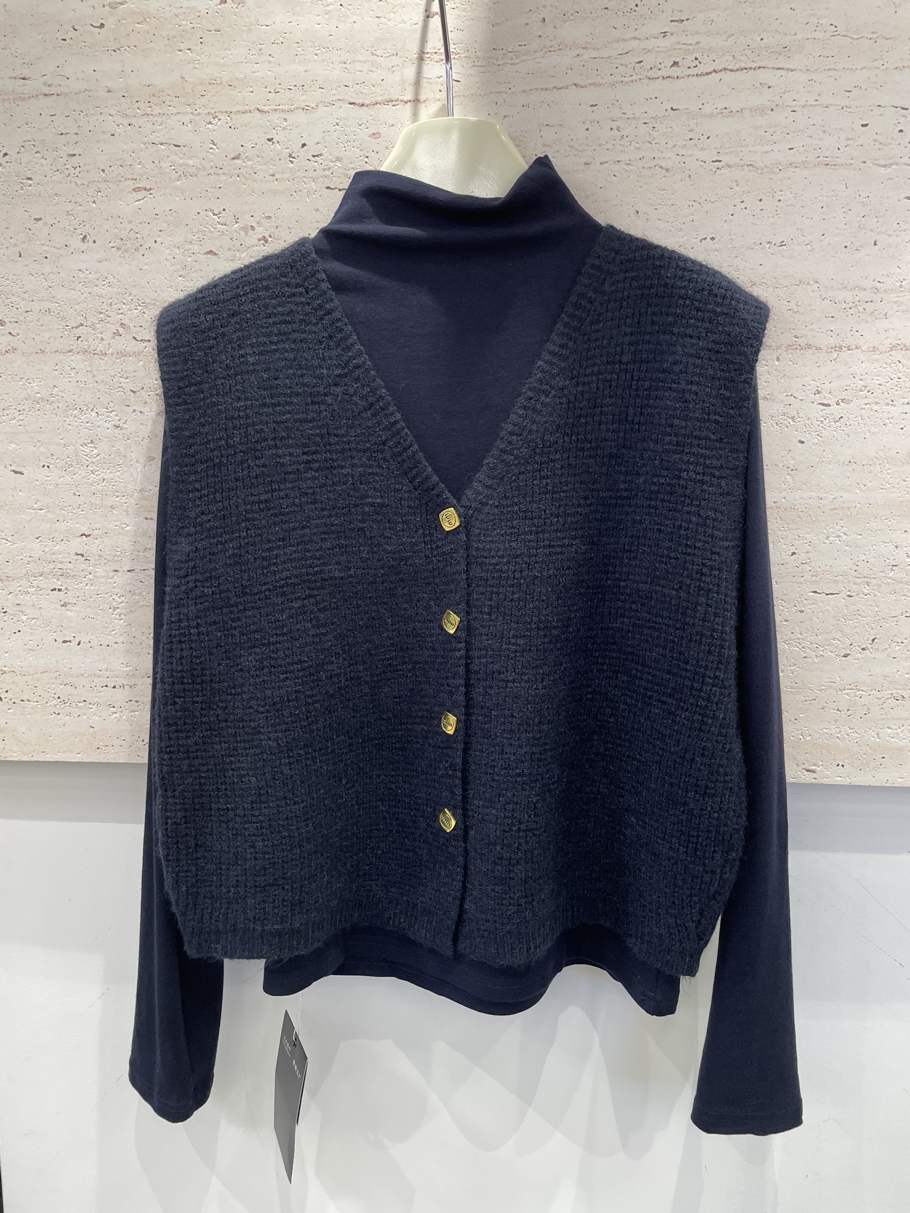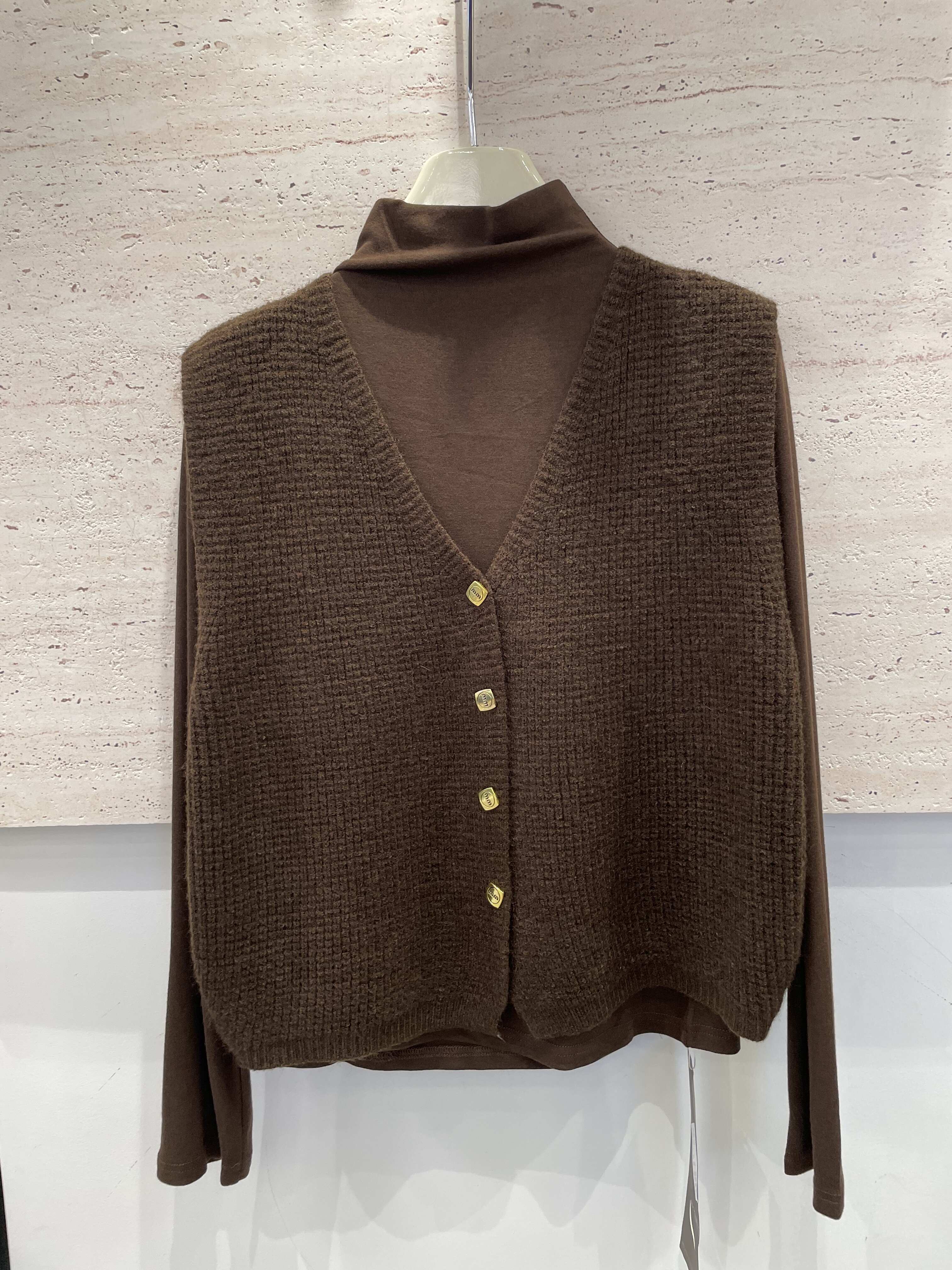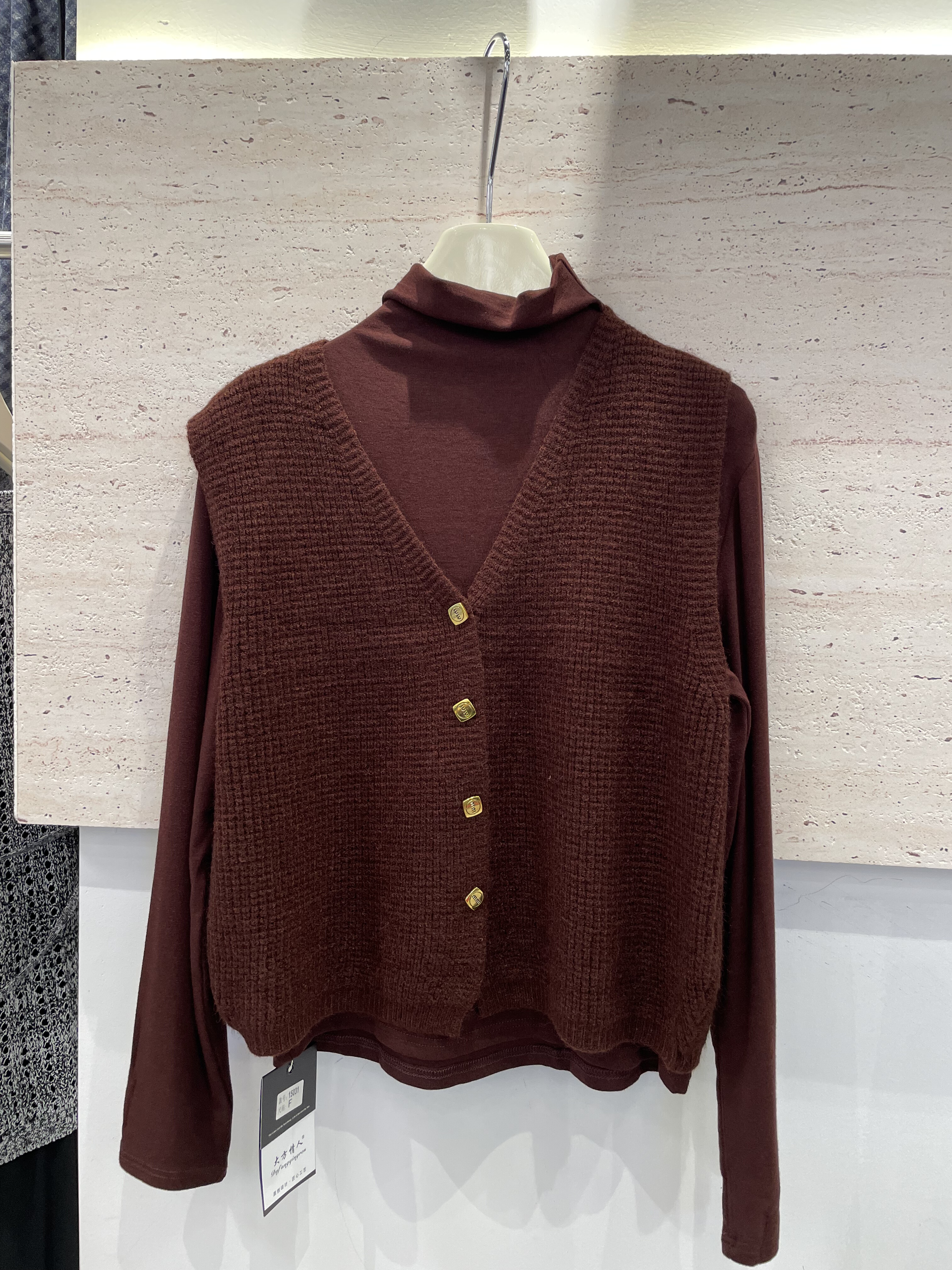 大方15031秋季新款时尚百搭V领针织马甲女+半高领T恤真两件套上衣
