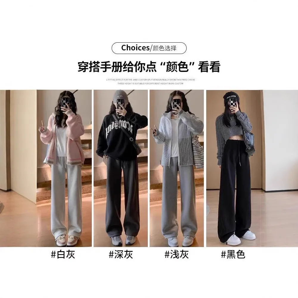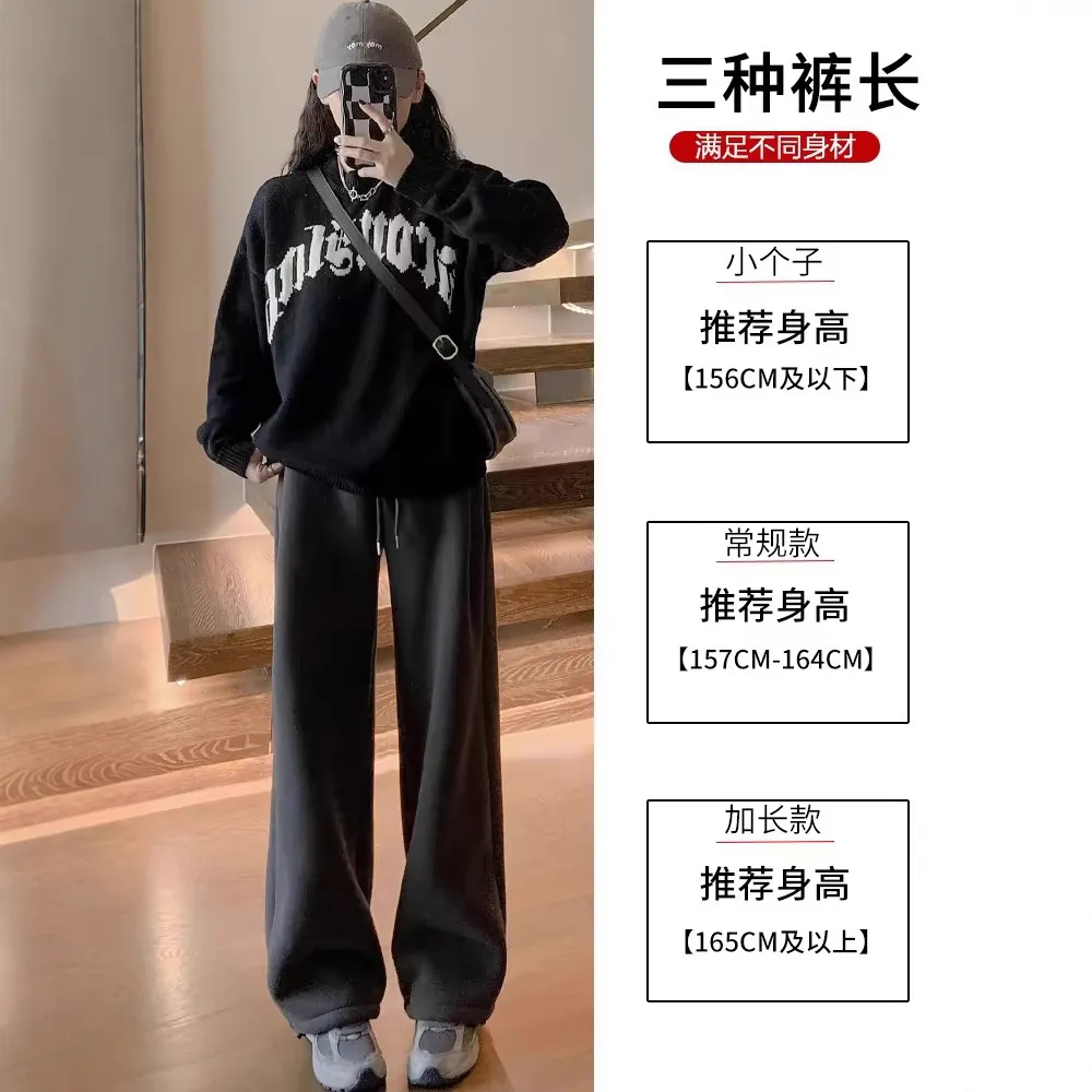 白灰色加绒运动裤女秋冬高腰阔腿宽松束脚卫裤加厚羊羔绒外穿棉裤