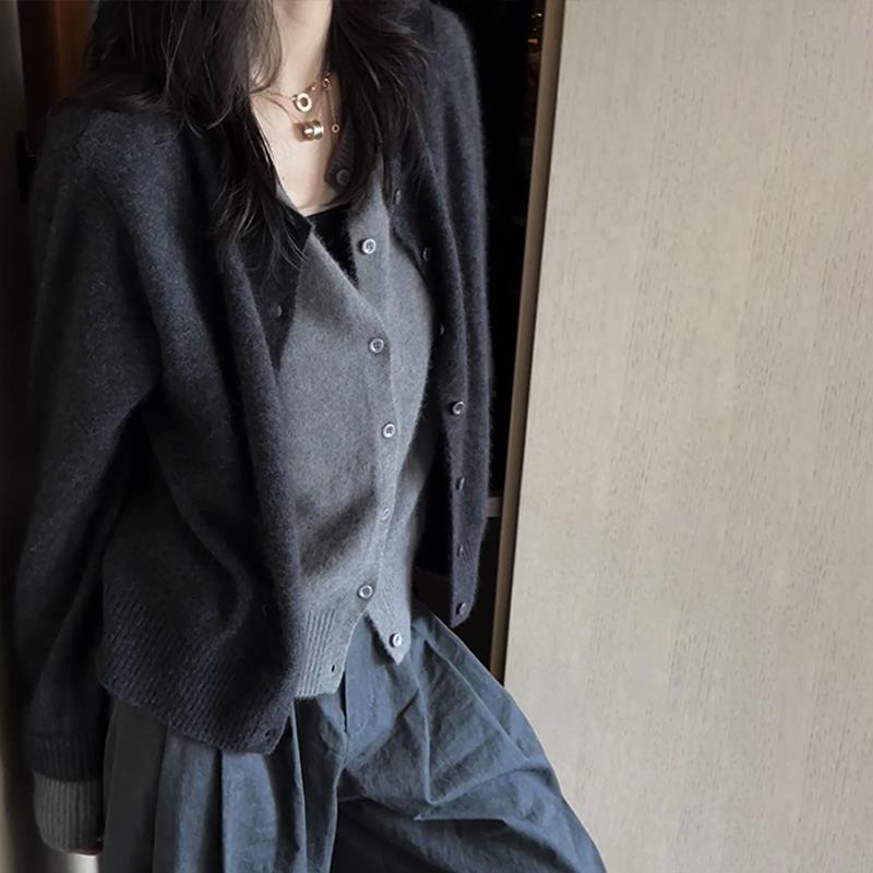 假两件针织毛衣外套女初春2025新款高级感毛衣开衫内搭打底衫上衣
