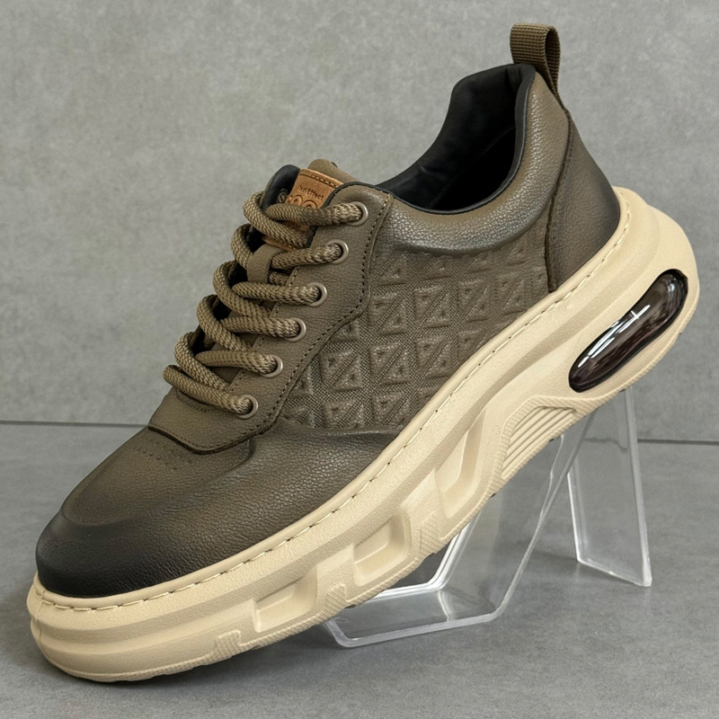 高档男士2025秋季新款气垫底男鞋真皮休闲运动鞋厚底增高老爹鞋