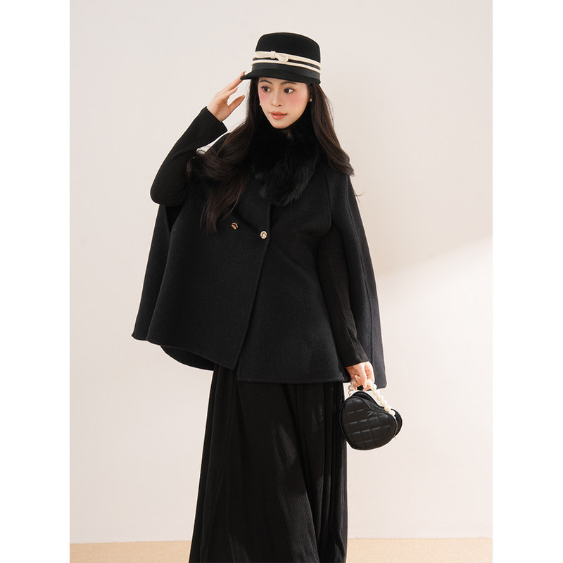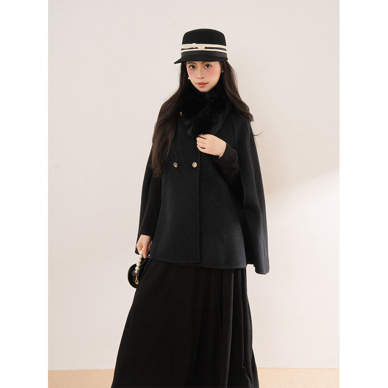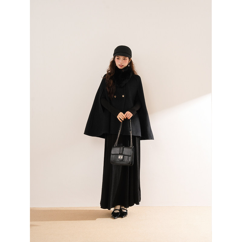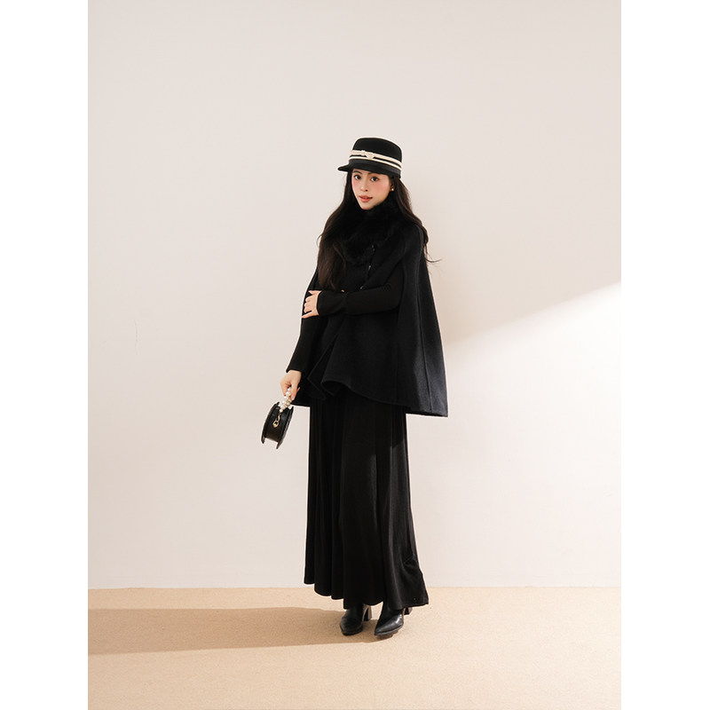财阀千金 斗篷大衣女2025秋冬新款外套气质韩系连衣裙毛领套装