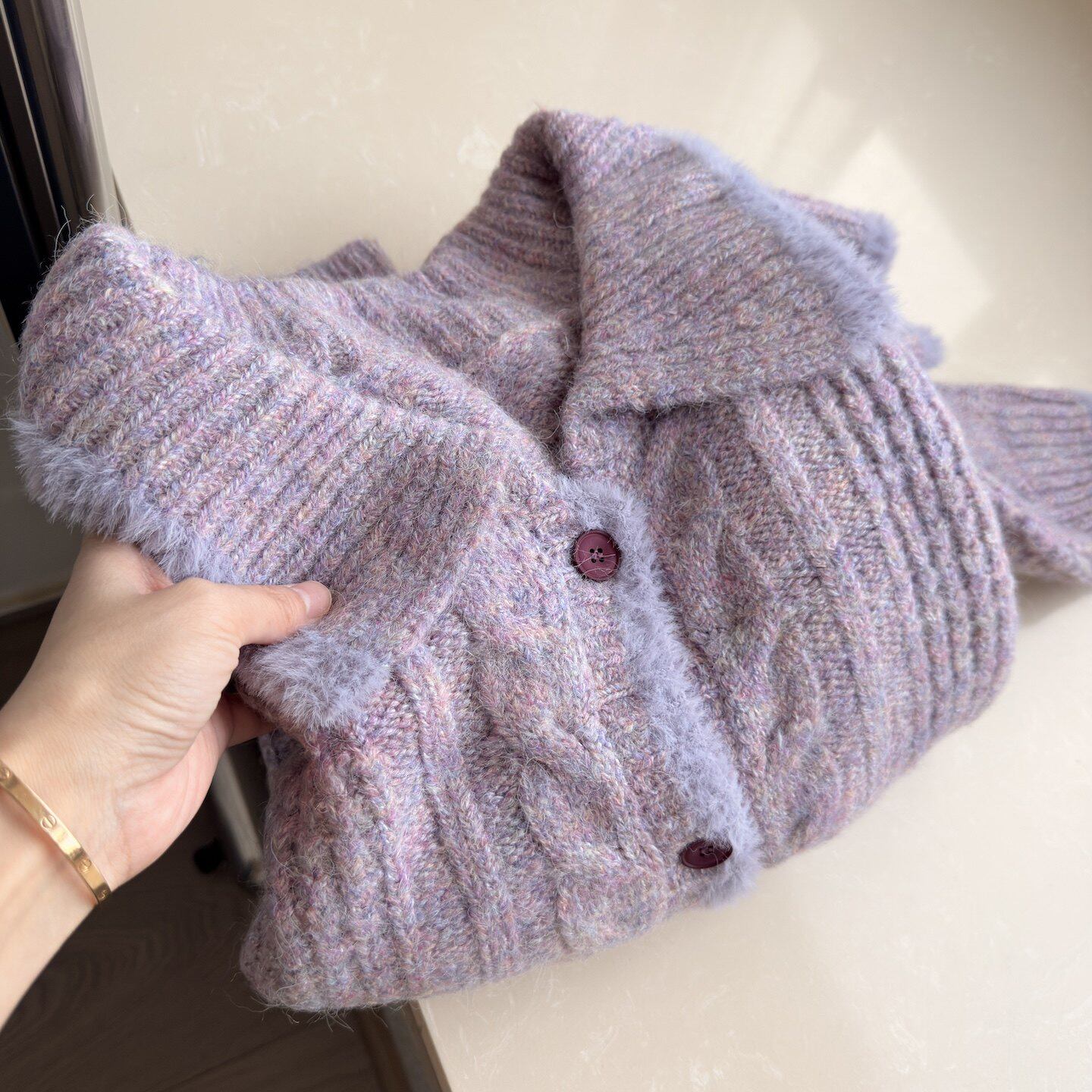 魔薇家 柜单900+温柔双色纱 女士休闲翻领针织开衫毛衣外套女秋冬