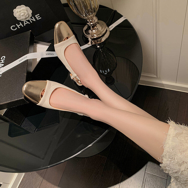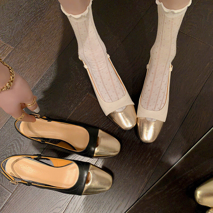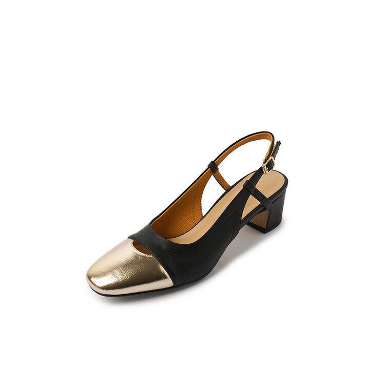 镂空鞋头小香风拼色粗跟包头后空凉鞋2023夏韩版气质舒适单鞋
