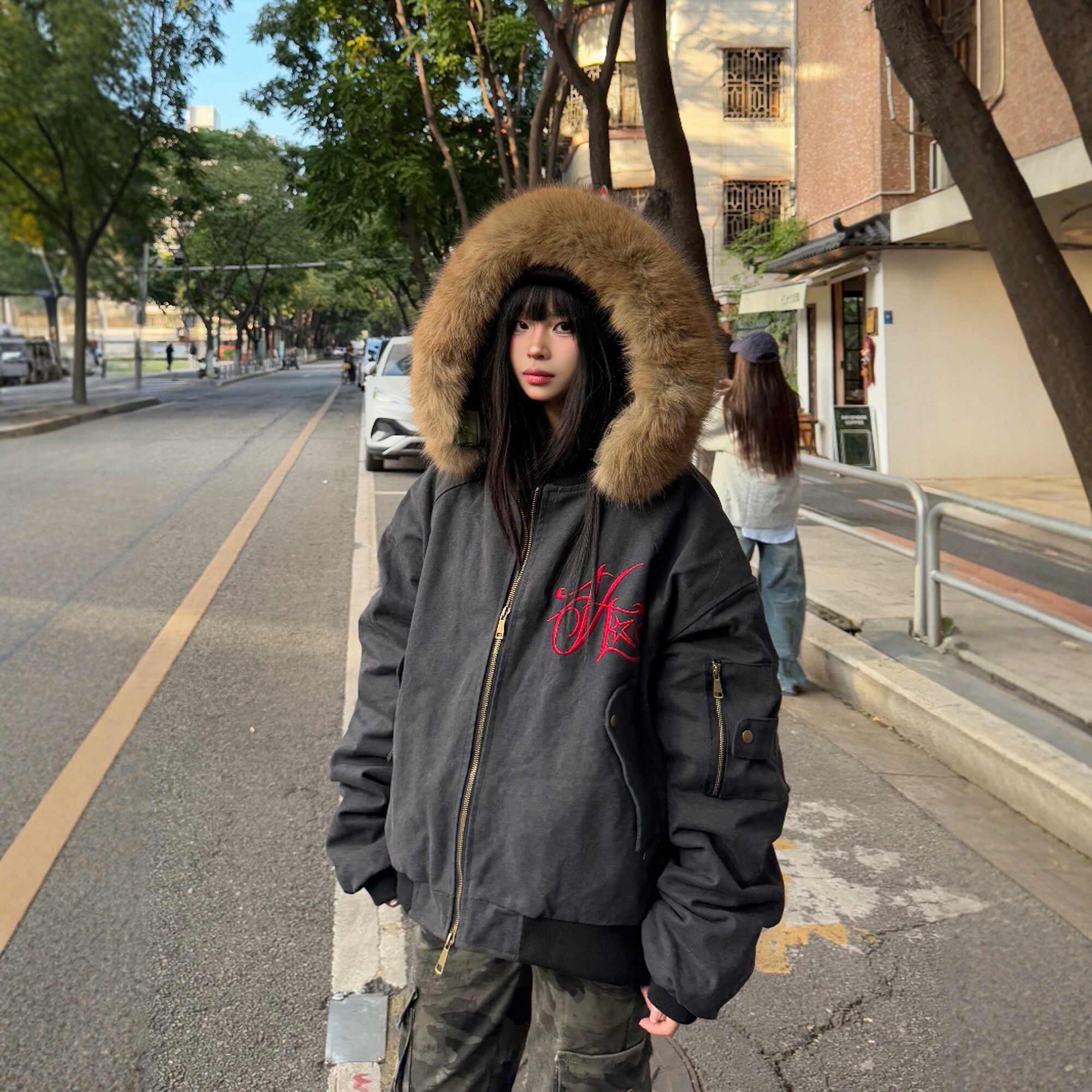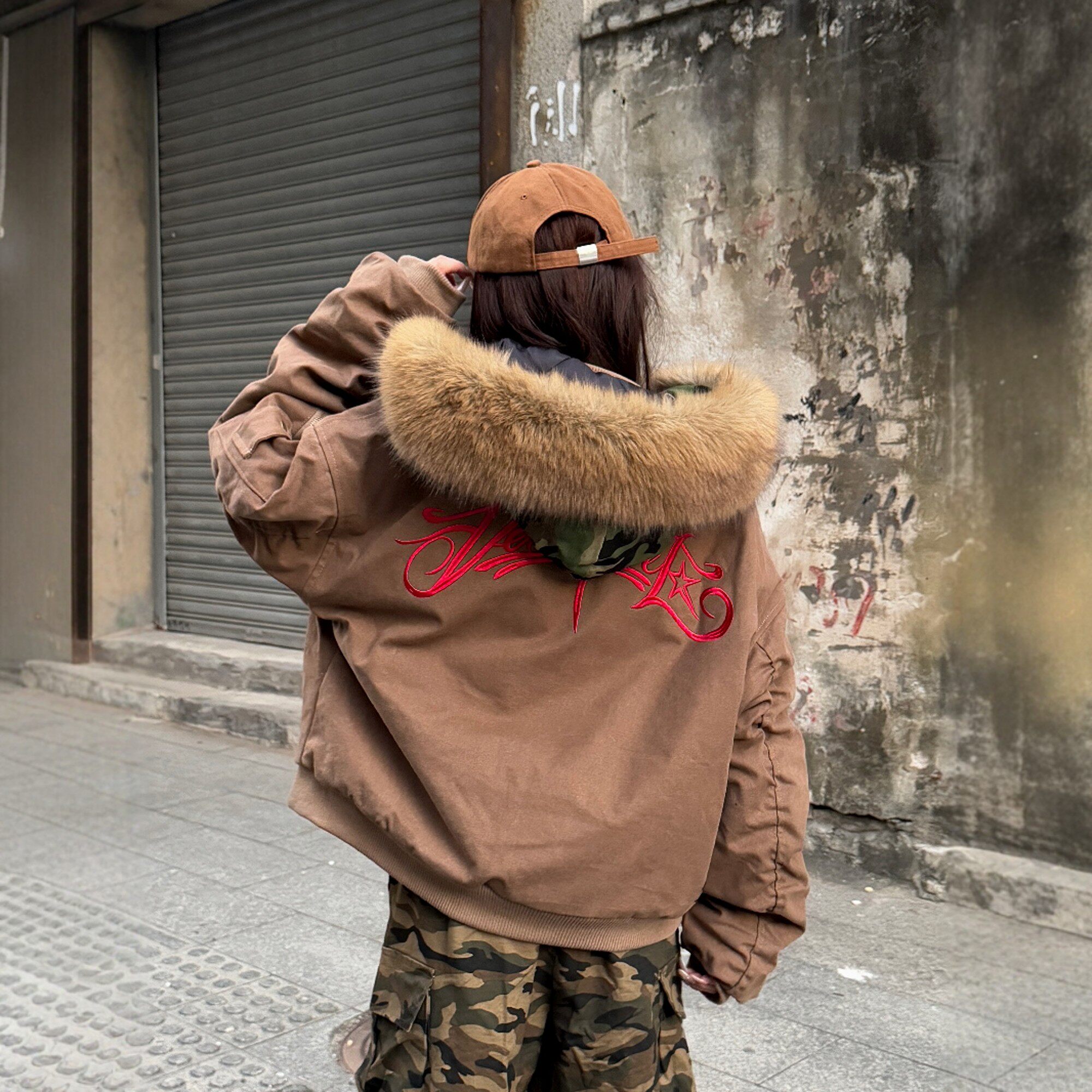 x不是好人 美式覆古毛领棉服男女情侣冬季保暖街头长袖夹克外套潮