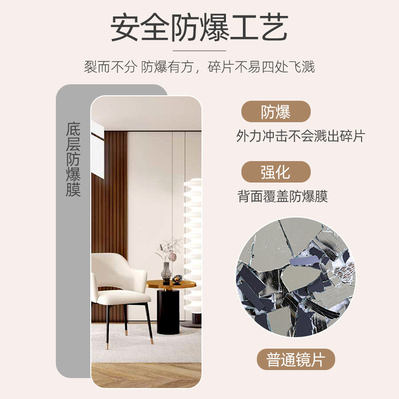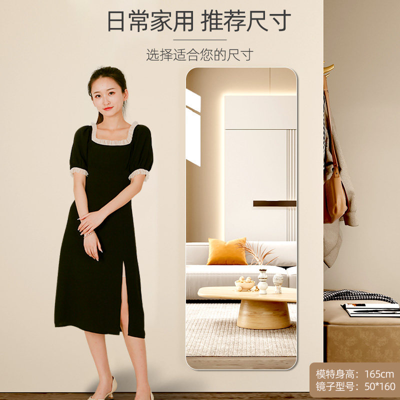 全身镜子贴墙自粘全身镜家用壁挂式墙上黏贴免打孔轻奢玻璃全身镜