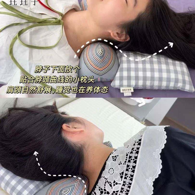 珏珏子枕头天然荞麦壳养生枕颈椎三角枕缓解疲劳贴合脖子老粗布