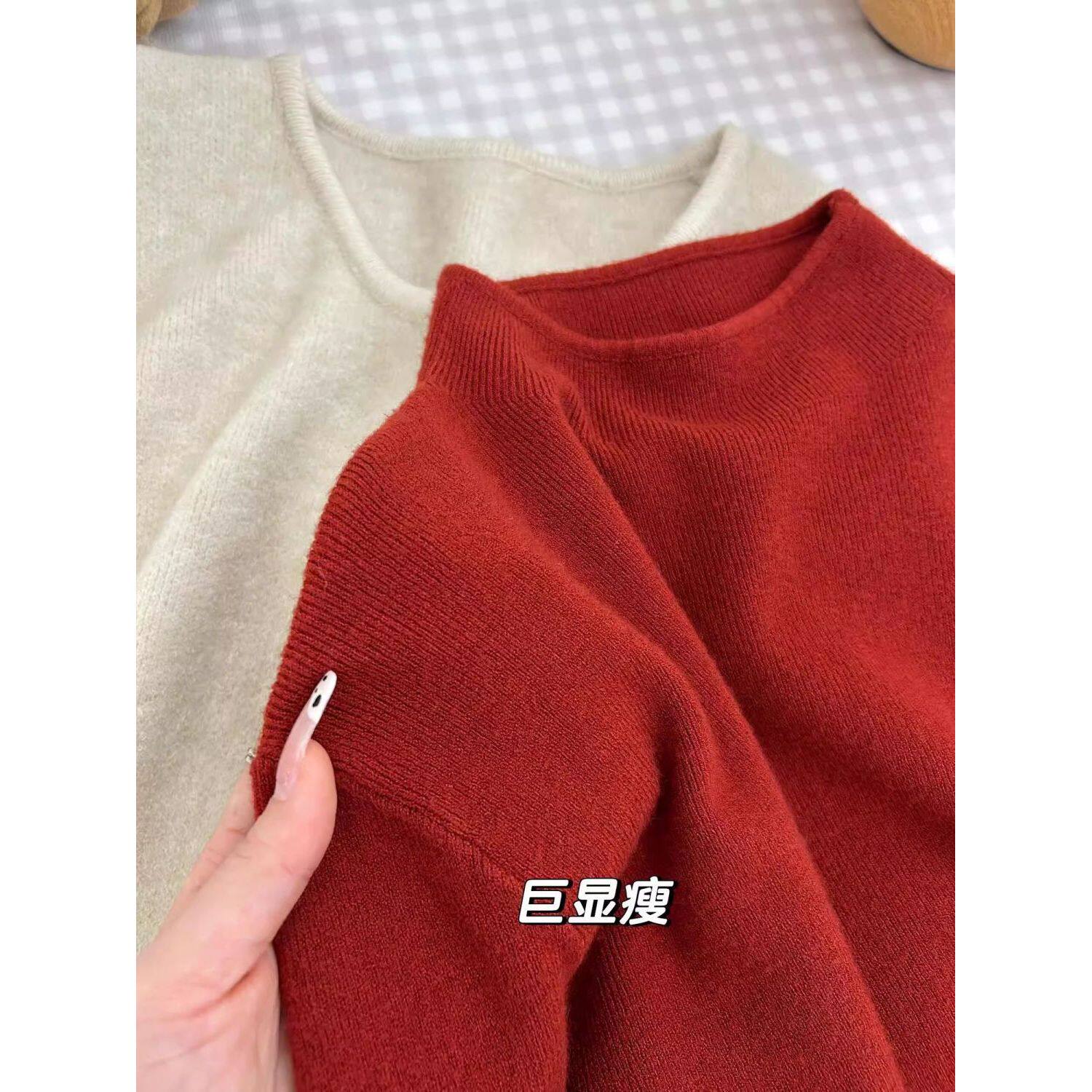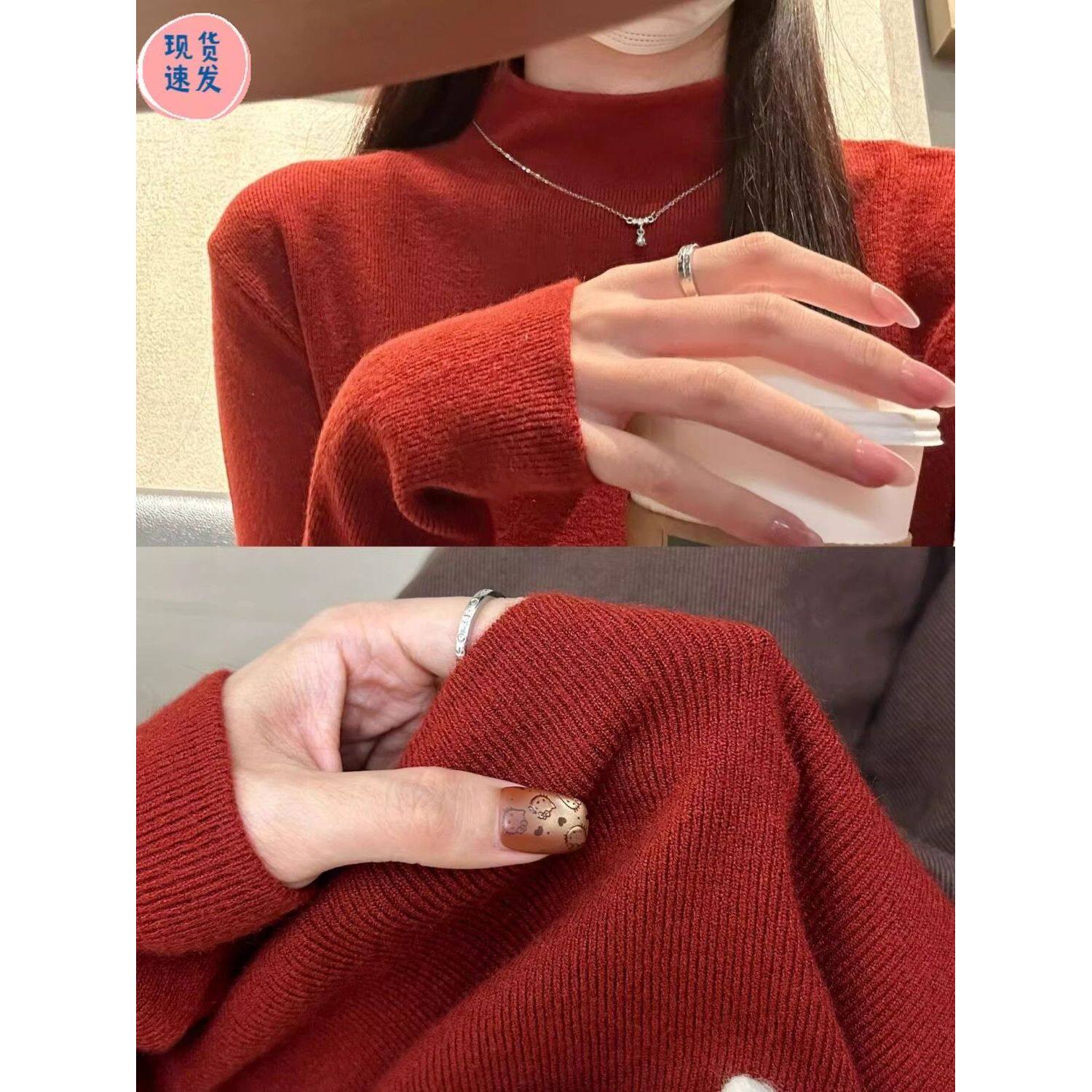 超火减龄安哥拉红显白内搭打底衫女秋冬毛衣半高领长袖针织衫上衣
