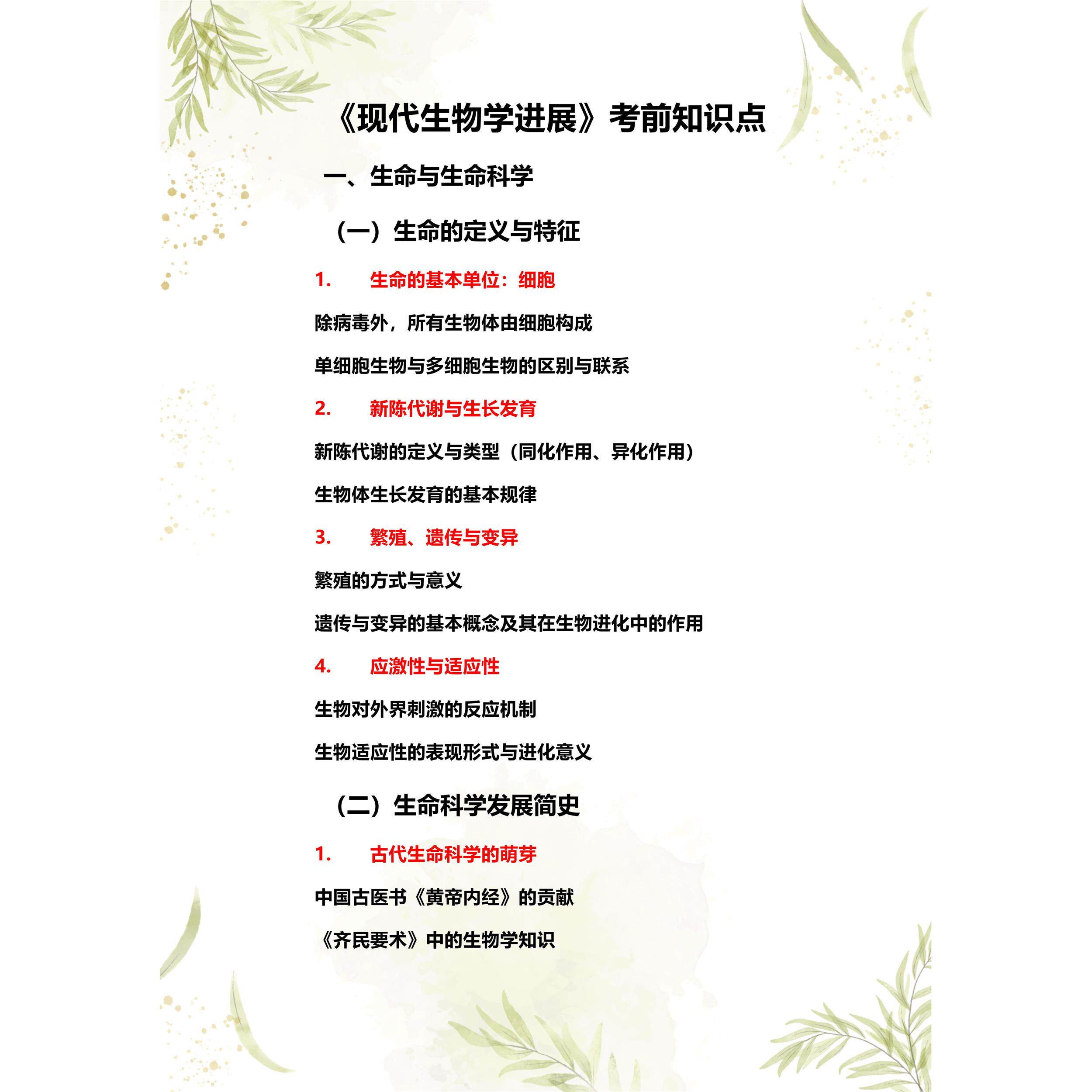 考点重点06445 现代生物学进展 考纲讲解自考笔记 资料 自考复习过关思维导图 精讲视频网课 考前押题资料