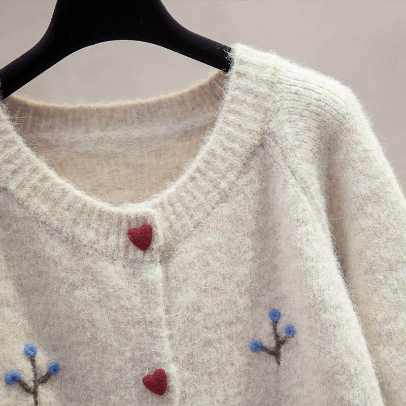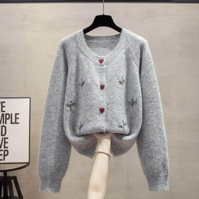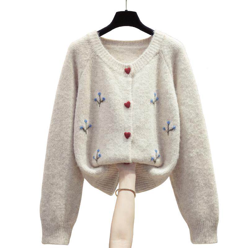 手工花5圆领衣外套女202春秋毛新宽款松慵懒风外D7036穿上衣厚针