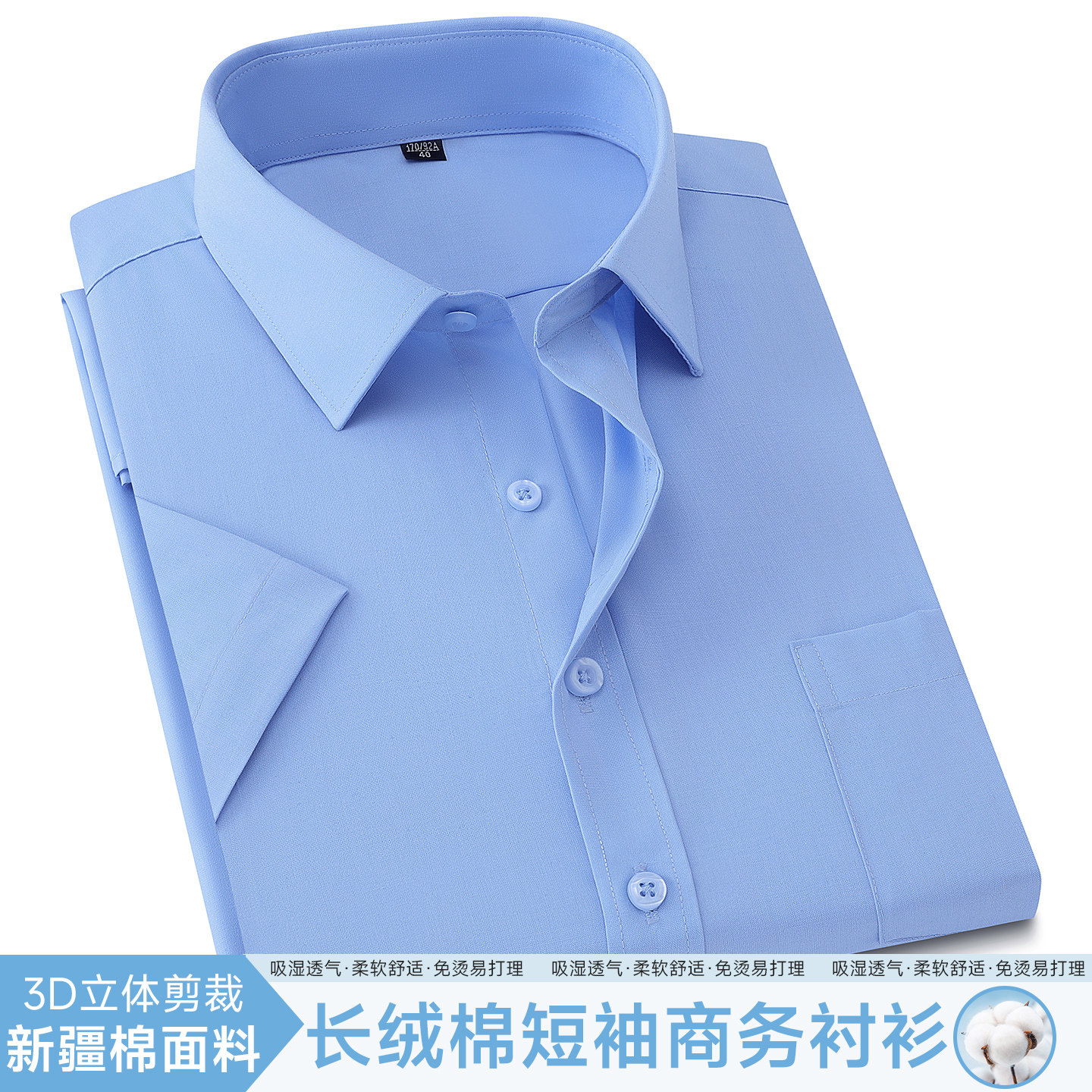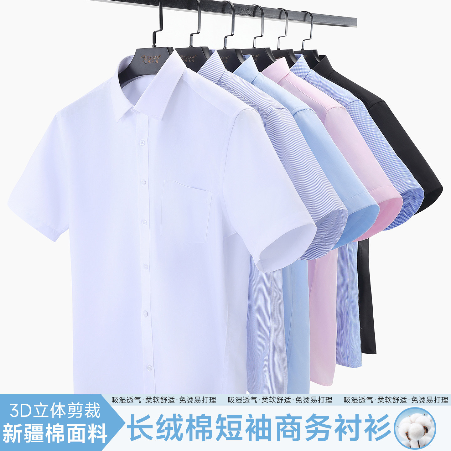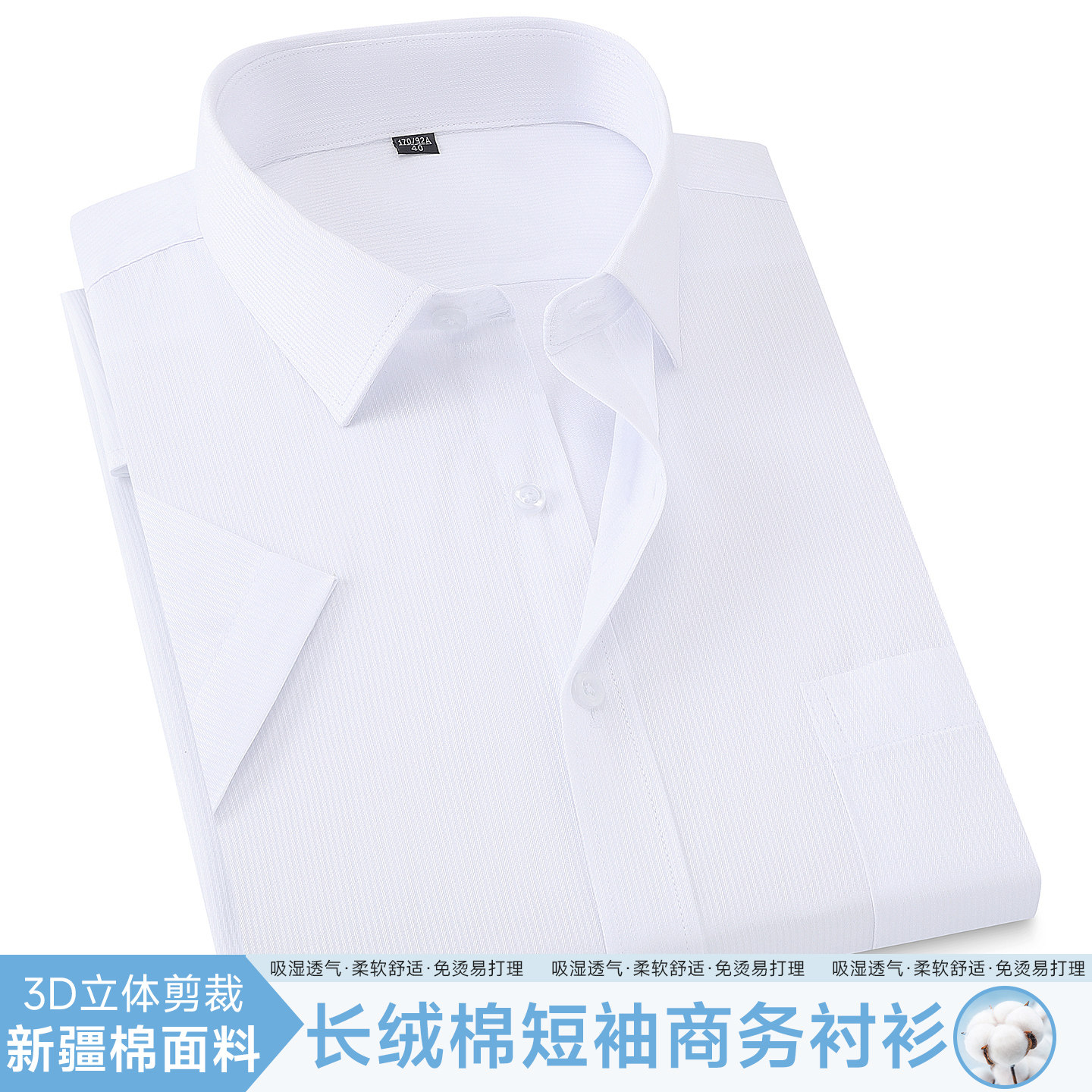 夏季男士短袖衬衫宽松大码休闲商务职业正装白色免烫半袖工装衬衣