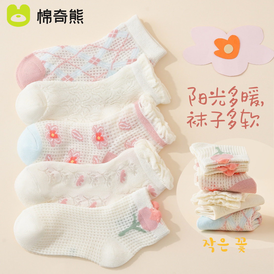 女童袜子夏季薄款棉童袜女孩宝宝春秋棉袜女宝儿童网眼春夏短袜