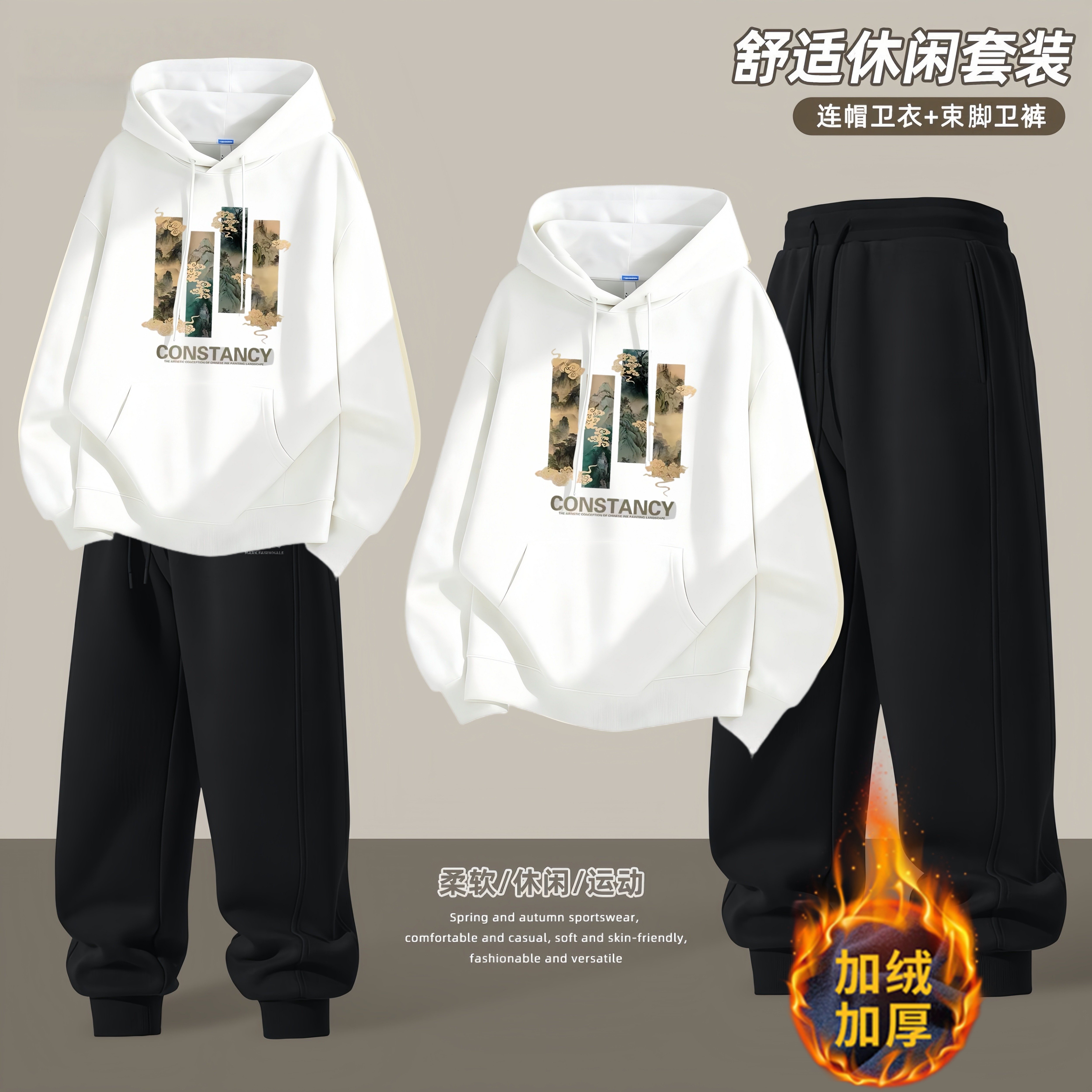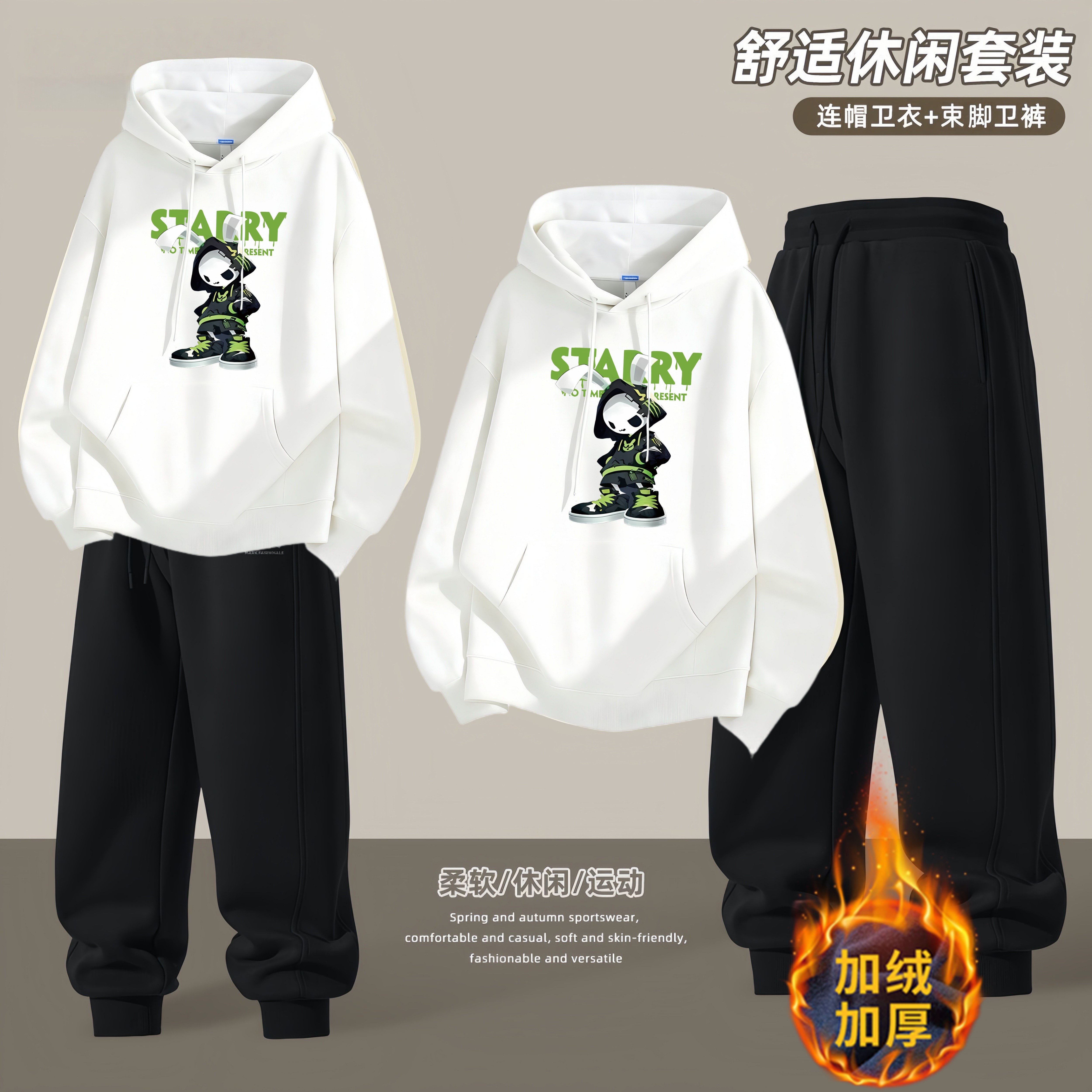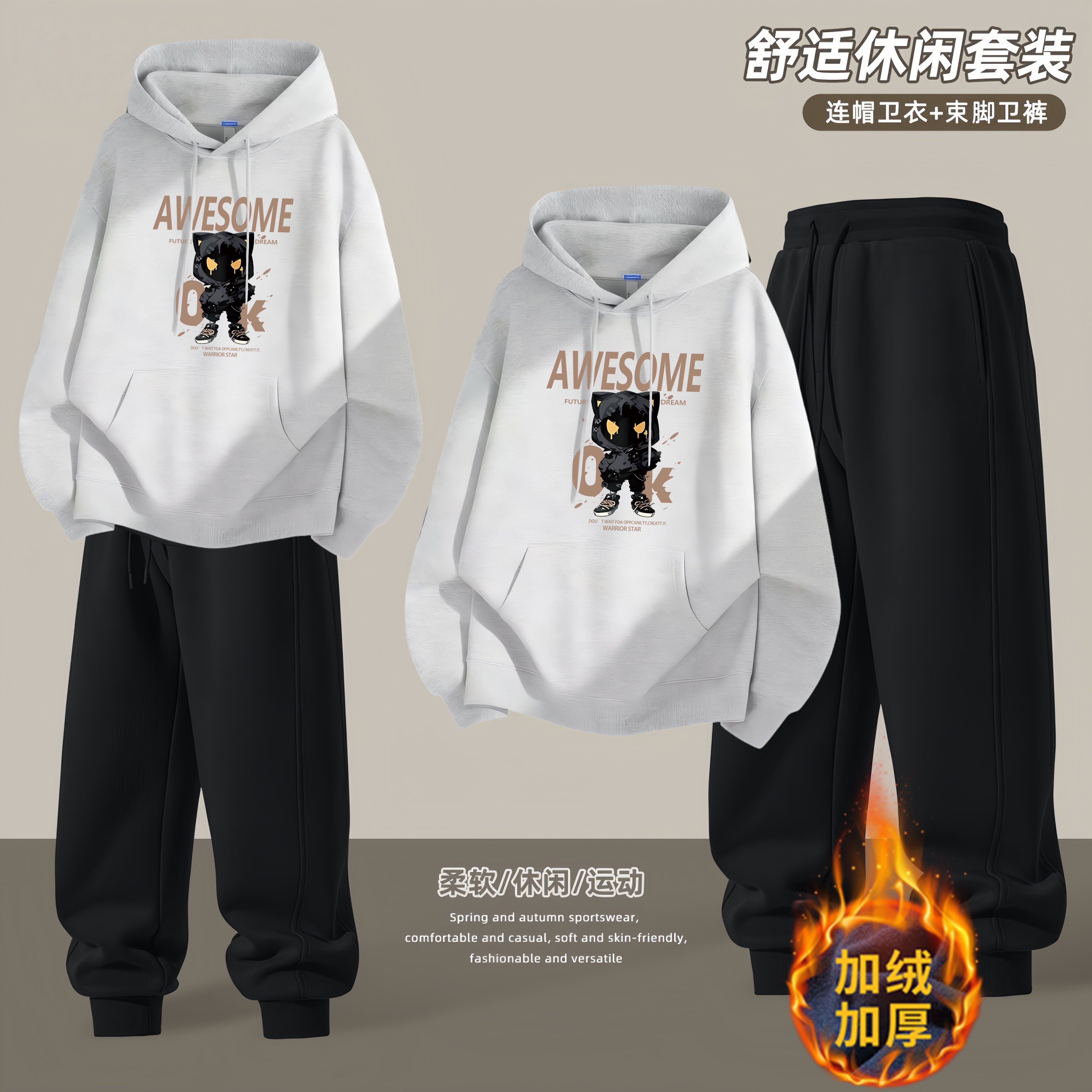 青少年连帽卫衣套装男秋冬季新款潮流运动宽松休闲帅气学生两件套